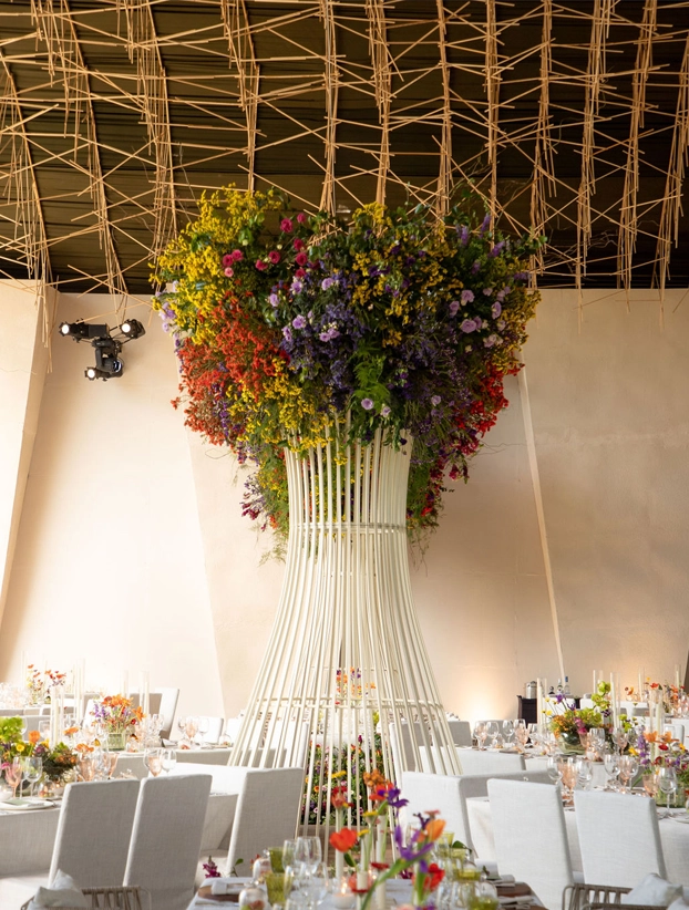 Esta estructura metálica color ivory es una pieza decorativa impactante, ideal para la renta en eventos elegantes como bodas, bautizos o eventos corporativos. Su diseño estilizado con barras curvas que se ensanchan hacia la parte superior, emula la forma de un árbol estilizado, ofreciendo un aspecto sofisticado y moderno.