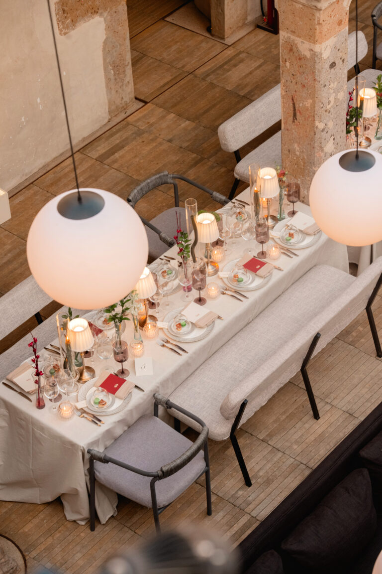 Este banco combina un diseño moderno y minimalista con una estructura de metal negro y un asiento acolchonado en tono gris claro. Su respaldo alargado y tapizado brinda comodidad, mientras que sus líneas estilizadas lo hacen una opción versátil para distintos tipos de eventos y espacios.