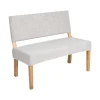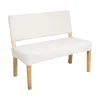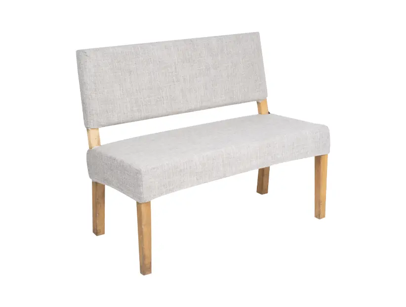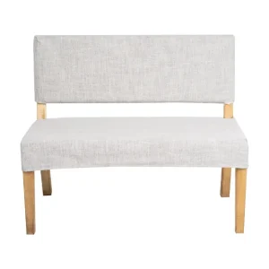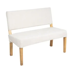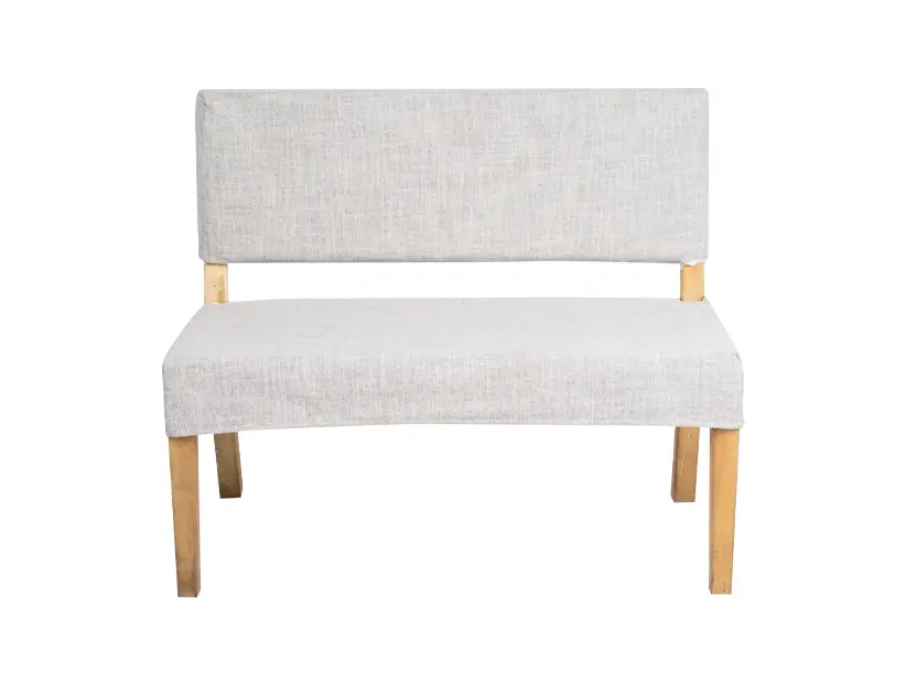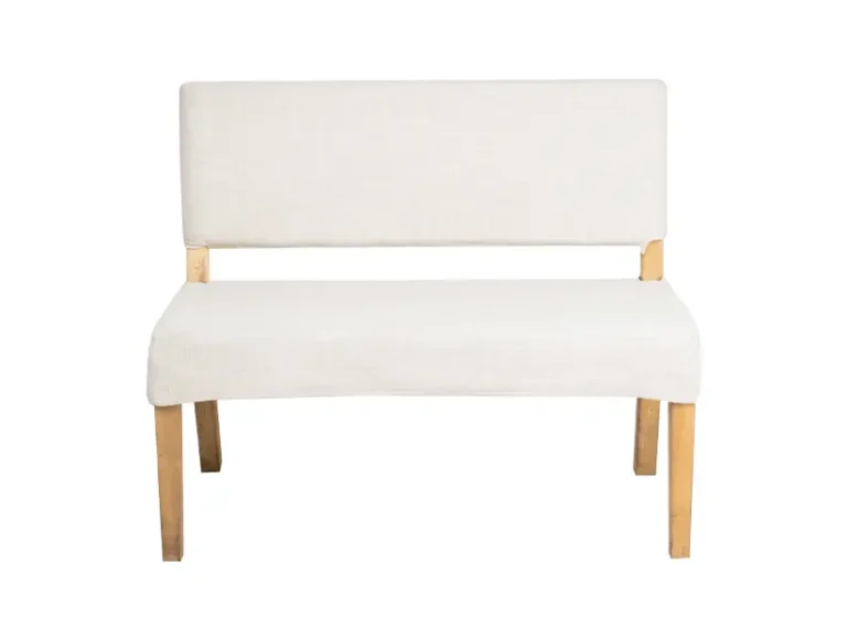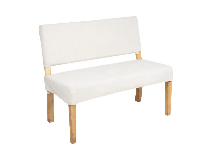 Banca con respaldo en color ivory y estructura de madera, ideal para renta en eventos que buscan un estilo sencillo y elegante. Su diseño compacto y confortable es perfecto para áreas lounge o como asiento adicional en espacios de socialización. Esta banca aporta un toque de calidez y sofisticación, adaptándose fácilmente a ambientes modernos y naturales.