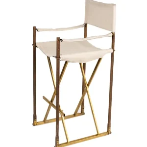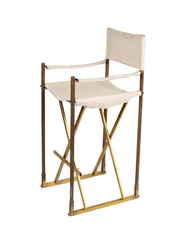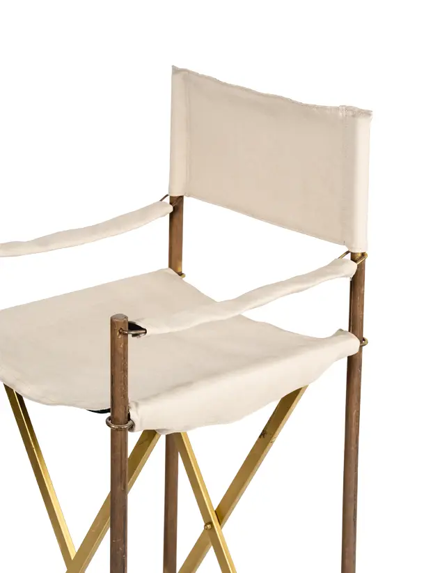 Este banco estilo director cuenta con una estructura metálica en acabado envejecido con un asiento y respaldo de tela en color claro, ofreciendo un diseño elegante y funcional. Su estilo plegable permite transportarlo y almacenarlo fácilmente, lo que lo hace ideal para eventos al aire libre o interiores con un ambiente relajado y sofisticado. Perfecto para bodas, eventos corporativos o sesiones de cóctel. Este banco combina un look clásico con un toque moderno, siendo una opción práctica y estética para decoraciones tanto casuales como formales.