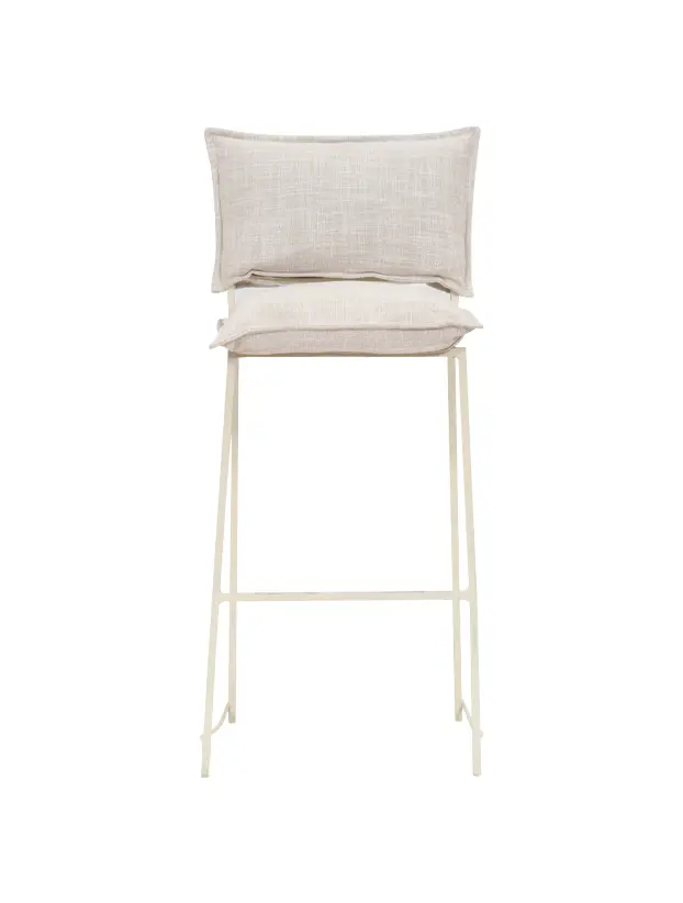 Este banco de diseño moderno y estilizado presenta una estructura metálica en color claro con un asiento y respaldo acolchados en tono ivory, que aportan comodidad y elegancia. Su respaldo bajo y su asiento acolchado le dan un aspecto acogedor y sofisticado, ideal para eventos de estilo contemporáneo o minimalista. Perfecto para barras y mesas altas en eventos como cócteles o reuniones formales, este banco añade un toque de distinción y simplicidad a cualquier ambiente, siendo una opción funcional y estética que se adapta a diversos estilos decorativos.