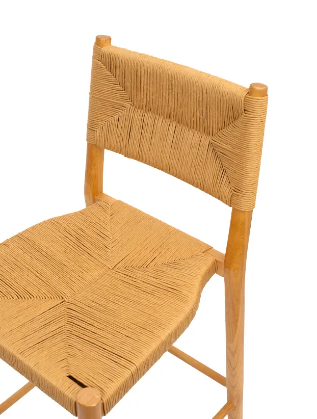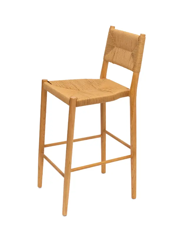 Este elegante banco alto de madera con asiento y respaldo tejidos en fibra natural es ideal para eventos que buscan un estilo rústico y sofisticado. Su diseño minimalista y cálido lo convierte en una opción versátil para barras, cocteles o espacios lounge. Perfecto para bodas, reuniones o celebraciones al aire libre.