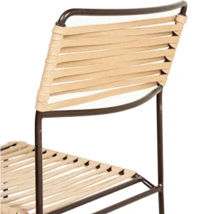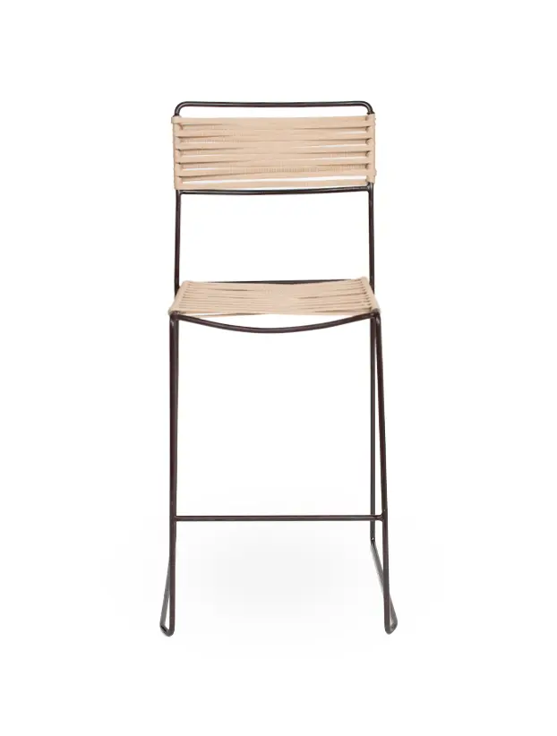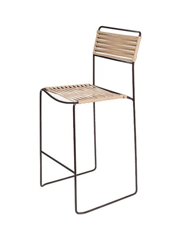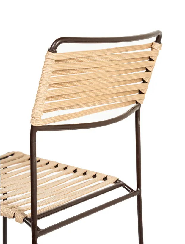 Este banco de diseño contemporáneo combina una estructura metálica en color negro con un asiento y respaldo tejidos en tono ivory, lo que le da un toque moderno y natural. La estructura delgada y el detalle del tejido le otorgan una apariencia ligera y elegante, ideal para ambientes al aire libre o interiores con estética boho o minimalista. Perfecto para barras en eventos informales o sofisticados, este banco proporciona un estilo distintivo que añade textura y confort al espacio, siendo una opción versátil y atractiva para diversas decoraciones.