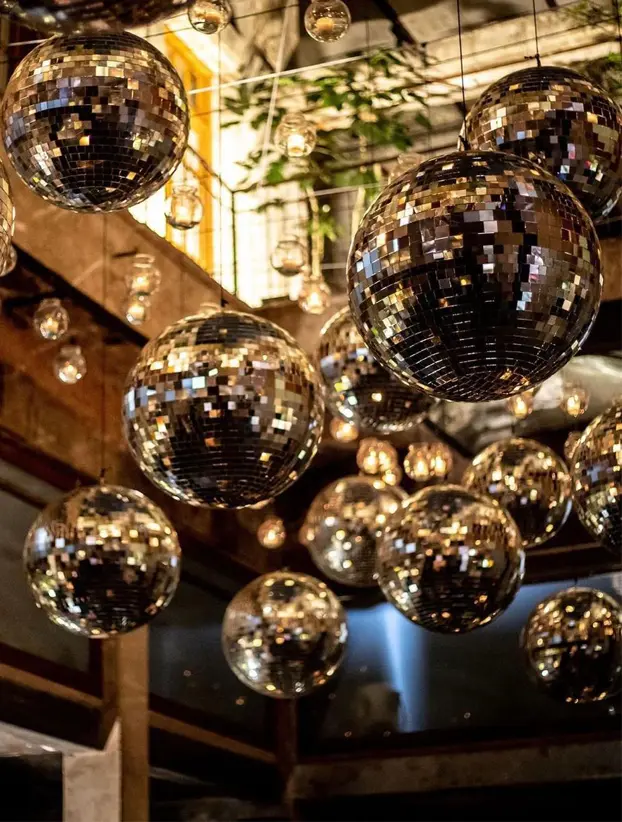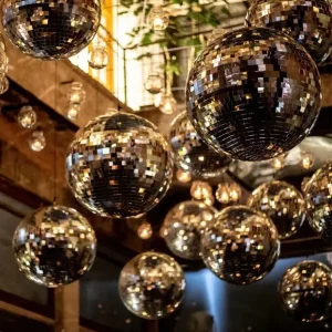 Esta es una bola de disco clásica, recubierta con pequeños espejos reflectantes que capturan y reflejan la luz en todas direcciones, creando un ambiente festivo y vibrante. Ideal para eventos y fiestas temáticas de estilo retro o moderno, esta bola de disco añade un toque de dinamismo y brillo al espacio. Al colgarse y girar bajo luces focales, proyecta destellos y patrones de luz que animan el ambiente, evocando el estilo característico de las pistas de baile de los años 70 y 80.