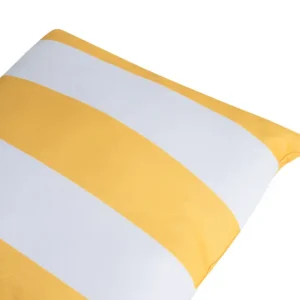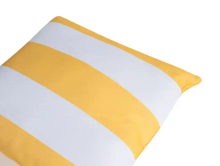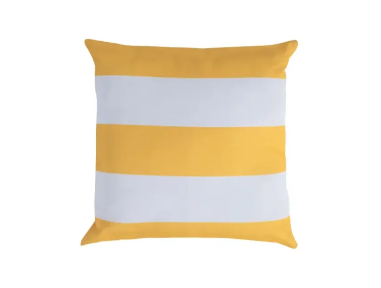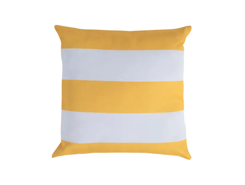 Cojines de rayas en color amarillo lino, ideales para aportar un toque alegre y cálido a eventos. Su diseño vibrante y sofisticado complementa perfectamente decoraciones en áreas de descanso, creando un ambiente acogedor y moderno.