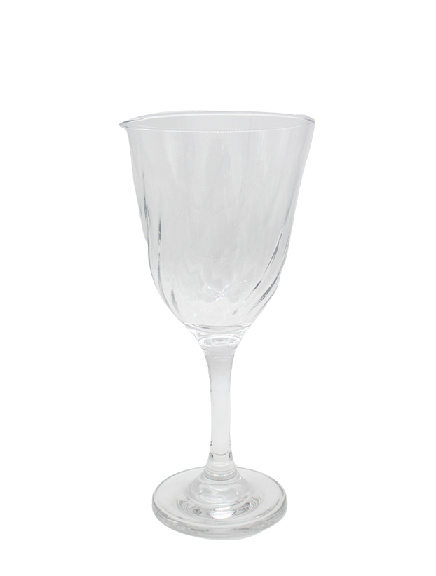 Esta elegante copa de vidrio transparente cuenta con sutiles relieves que le añaden textura y estilo sin restar sencillez. Ideal para bodas, eventos formales y cenas elegantes, su diseño clásico y versátil complementa cualquier mesa, ofreciendo una presentación refinada para vinos o cócteles en celebraciones especiales.