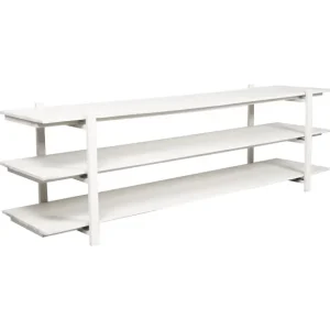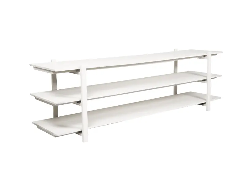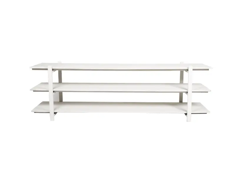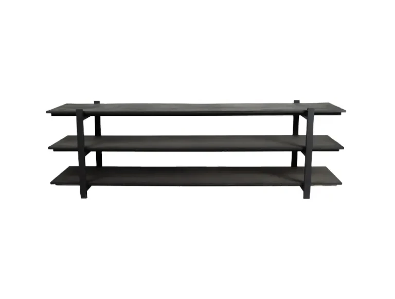 Credenza de tres niveles en color negro con diseño minimalista y estructura sólida, ideal para renta en eventos que necesitan espacio de almacenamiento o exhibición. Su construcción lineal y amplia superficie permite organizar diversos objetos, siendo perfecta para estaciones de bar, áreas de bienvenida o como elemento decorativo en eventos de estilo industrial o moderno. Esta credenza ofrece funcionalidad y un estilo sobrio que se adapta a diferentes tipos de decoración.