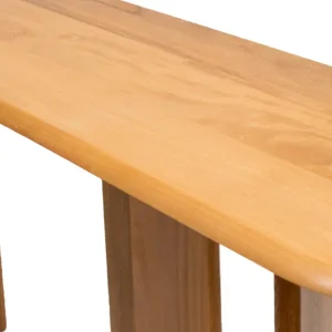Credenza de madera con diseño elegante y contemporáneo. Su estructura sólida y acabados en madera natural la convierten en una pieza versátil para eventos, perfecta para complementar mesas de banquete, estaciones de bebidas o montaje de decoración. Su estilo minimalista y sus bordes redondeados aportan un toque sofisticado y cálido al ambiente.