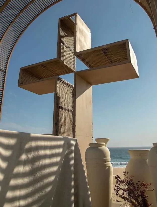 Cruz metálica grande para decoración en el altar es un elemento imponente y elegante diseñado para realzar ceremonias religiosas y eventos especiales. Está fabricada en metal resistente, con un acabado en color ivory.