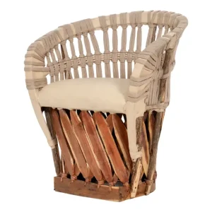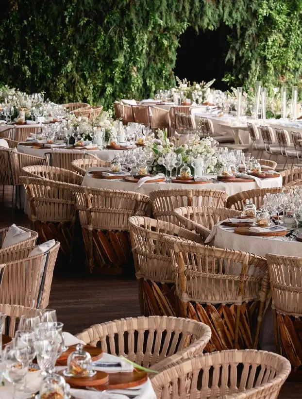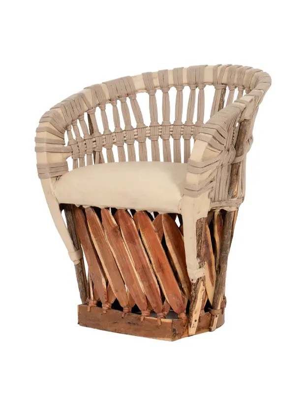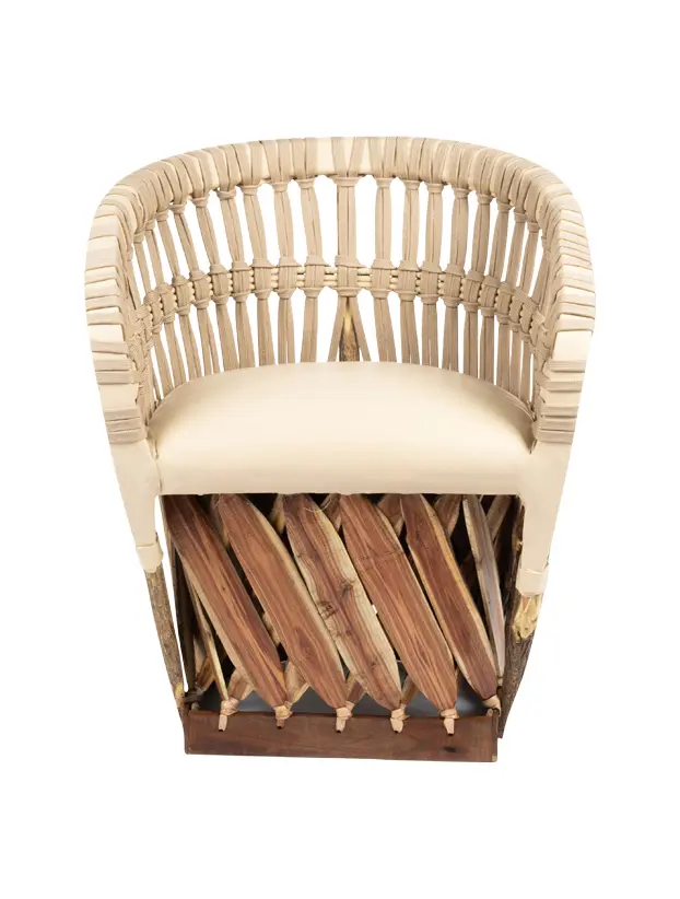 Equipal con estructura de madera y cuero trenzado, ofrece una apariencia artesanal y única. Su diseño curvo y acogedor proporciona comodidad, mientras que el respaldo y asiento en tonos naturales armonizan perfectamente con ambientes al aire libre o temáticas boho y campestres. Esta silla es ideal para bodas, fiestas temáticas, y celebraciones en las que se desea un mobiliario auténtico que resalte el encanto y la cultura de México.