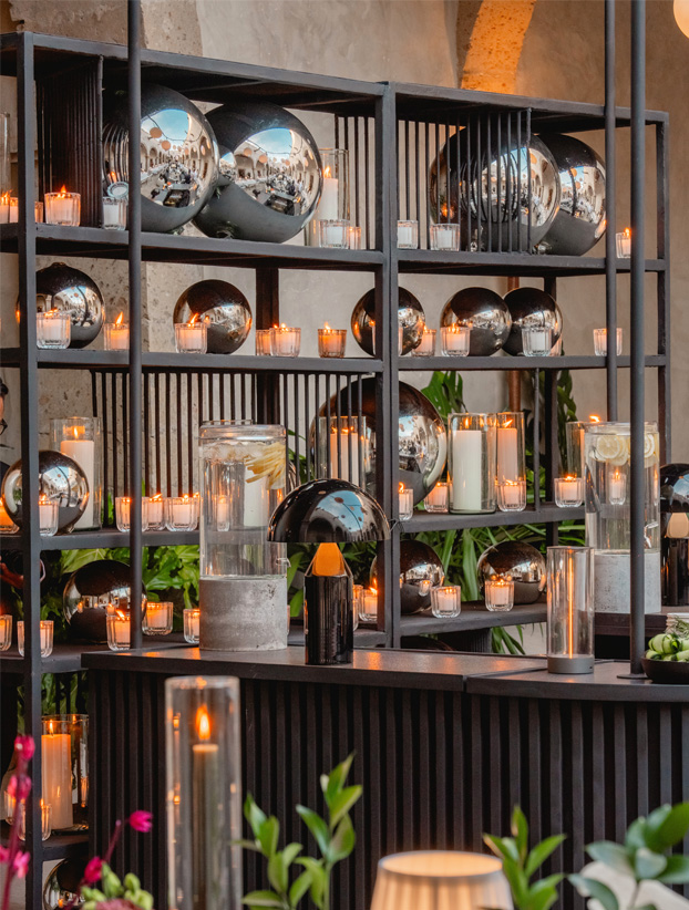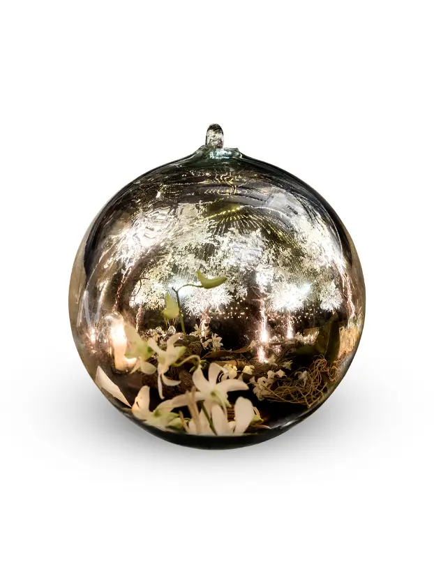 Esta esfera de vidrio soplado es un elegante y delicado elemento decorativo, ideal para ambientaciones en eventos. Su diseño transparente permite apreciar el contenido interior, como flores o luces, lo que crea un efecto de profundidad y brillo. Perfecta para colgar o exhibir en centros de mesa, añade un toque de sofisticación y encanto natural. La superficie de vidrio reflejante realza la iluminación ambiental, convirtiéndola en un detalle atractivo para crear una atmósfera mágica y acogedora en cualquier celebración.