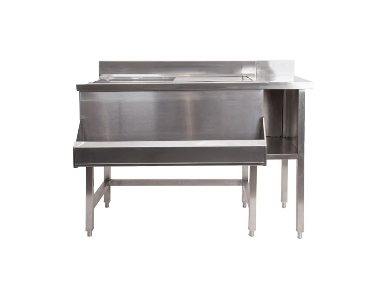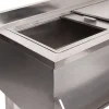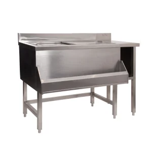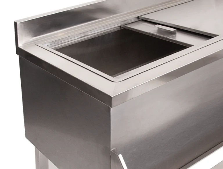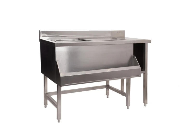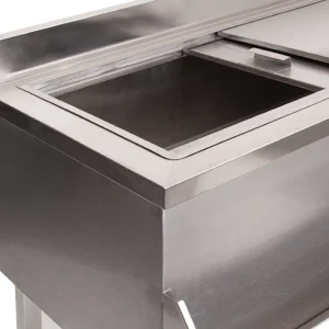 Esta hielera de servicio profesional está fabricada en acero inoxidable, lo que garantiza durabilidad, higiene y facilidad de limpieza, siendo perfecta para eventos de gran escala. Su diseño incluye compartimentos superiores con tapas corredizas para almacenar hielo de forma segura y conservar bebidas frías durante todo el evento. Además, cuenta con un depósito frontal inclinado para acceso rápido y práctico, ideal para barras de coctelería o estaciones de bebidas. Su estructura robusta la hace apta para uso intensivo en ambientes de catering, bodas, banquetes o eventos corporativos. Disponible para renta, es un elemento esencial en operaciones de servicio eficientes y profesionales.