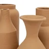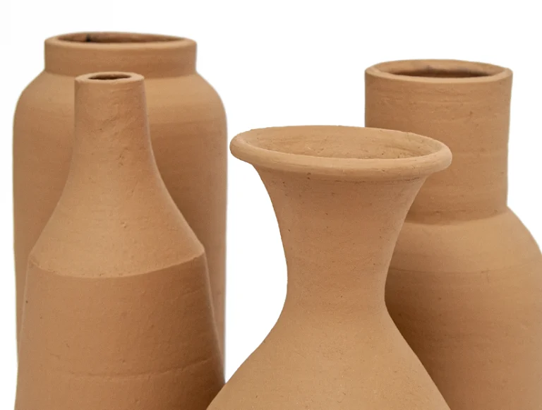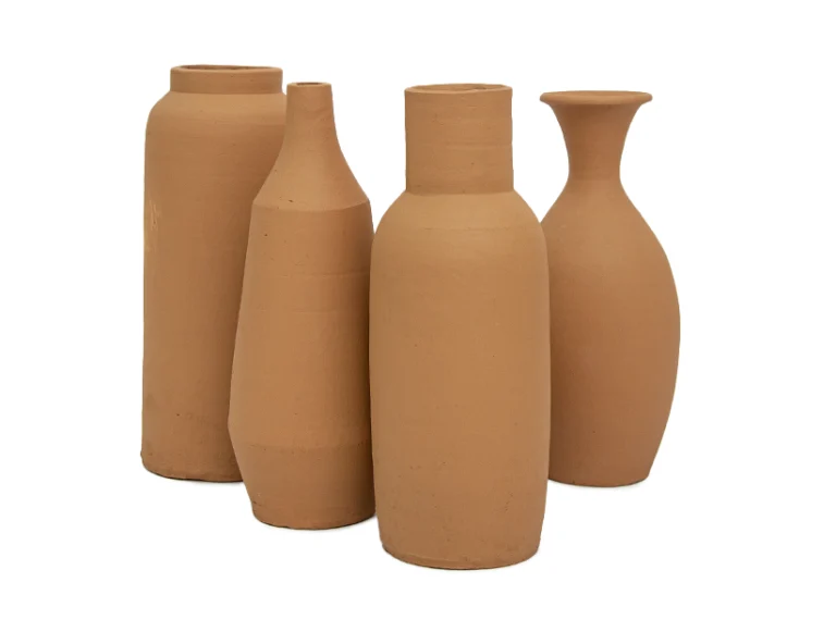 Set de jarrones de barro en acabado natural, con formas alargadas y orgánicas que aportan un estilo artesanal y rústico a cualquier montaje. Su tono terracota cálido los hace ideales para decorar mesas, entradas o rincones especiales, creando ambientes acogedores y elegantes en eventos sociales o corporativos.