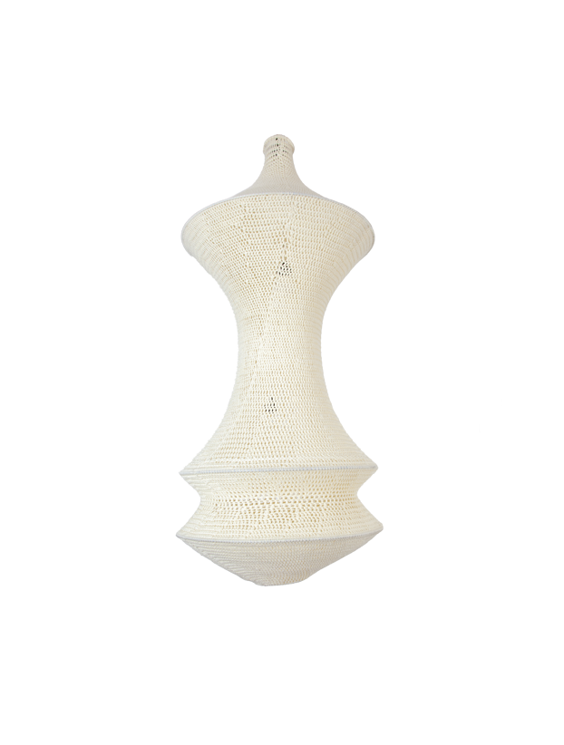 Esta lámpara colgante tejida destaca por su diseño escultural y artesanal, ideal para ambientaciones con un toque bohemio, contemporáneo o natural. Su forma orgánica y simétrica, combinada con el tejido de fibra en tono blanco, crea una pieza visualmente impactante que difunde la luz de manera cálida y envolvente. Es perfecta para suspender en salones, carpas, jardines o espacios interiores que buscan un elemento decorativo de gran carácter. Disponible para renta, esta lámpara aporta textura, estilo y una atmósfera acogedora a cualquier evento.
