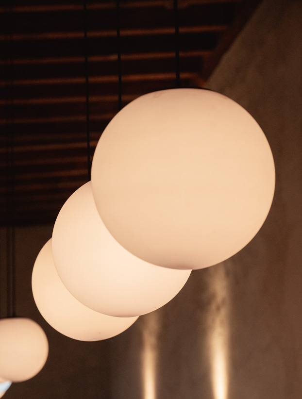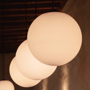 Lámpara con diseño de esfera blanca en 3 medidas