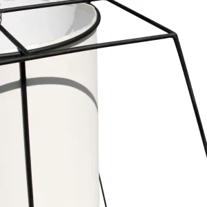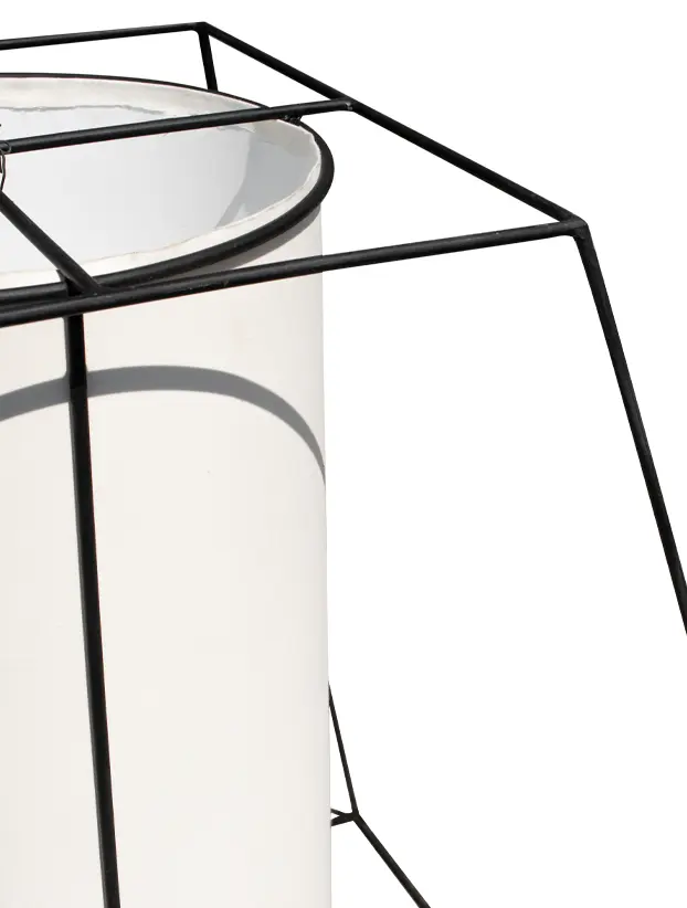Esta lámpara de diseño moderno combina una estructura geométrica en metal negro con una pantalla cilíndrica central en tono marfil, creando un contraste elegante y minimalista. Su estilo contemporáneo y líneas limpias la hacen ideal para eventos sofisticados, ofreciendo una iluminación equilibrada y decorativa. Perfecta para ambientaciones modernas, industriales o vanguardistas, su diseño abierto permite jugar con la luz y las sombras, aportando un toque distintivo a bodas, recepciones y celebraciones exclusivas.