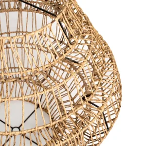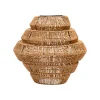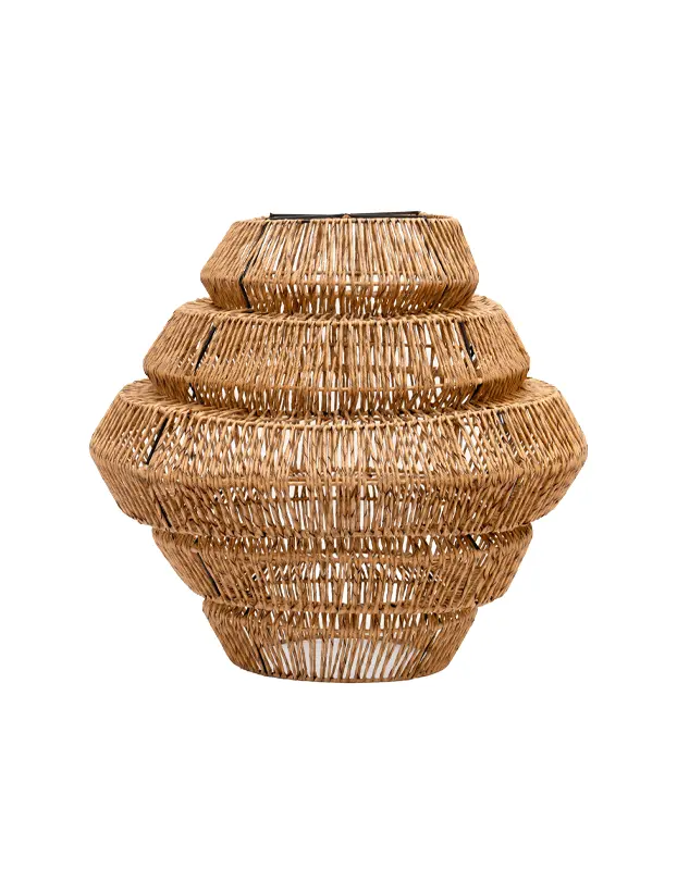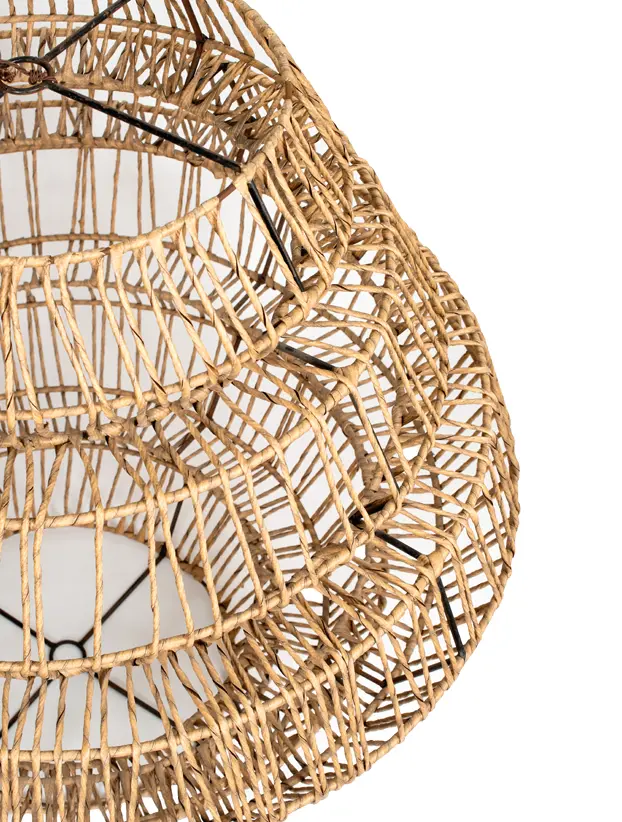 Esta es una lámpara de mimbre tejida, conocida como «lámpara Tamarindo», con un diseño de múltiples niveles en forma de colmena. Su entramado natural permite que la luz se filtre de manera cálida y acogedora, creando un ambiente rústico y relajado. El color natural del mimbre le da un aspecto orgánico, ideal para decoraciones bohemias, tropicales o rústicas. Este diseño es perfecto para añadir un toque artesanal y elegante a eventos o espacios interiores, proporcionando una estética distintiva y envolvente.