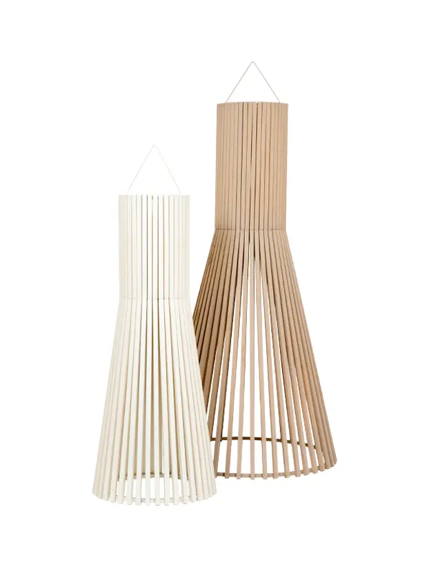 Estas son dos lámparas de estilo «ranchito» en diferentes tamaños, con un diseño de listones verticales de madera en tonos claros. Su estructura abierta permite que la luz se disperse de forma suave y natural, creando un ambiente cálido y acogedor. La combinación de ambos tamaños añade dinamismo y profundidad a la decoración, siendo ideales para ambientes rústicos, bohemios o contemporáneos. Estos elementos son perfectos para eventos que buscan un toque orgánico y elegante, proporcionando una estética sencilla pero sofisticada.