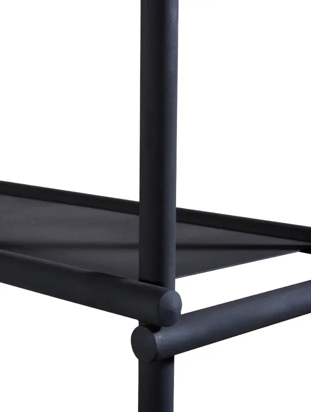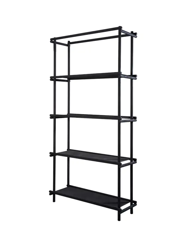 Este librero «Ethnos» en color negro es una pieza funcional y moderna que combina estilo y versatilidad. Su diseño de estantes abiertos y estructura metálica le confiere un aspecto industrial, ideal para exhibir libros, decoraciones o plantas. Los estantes amplios ofrecen suficiente espacio para organizar y mostrar diversos elementos, mientras que la estética minimalista permite que se integre en una variedad de estilos decorativos, desde el contemporáneo hasta el bohemio. Este librero es perfecto para eventos, oficinas o espacios de hogar que buscan un toque elegante y funcional, además de ser una excelente opción para crear un ambiente acogedor y estilizado.