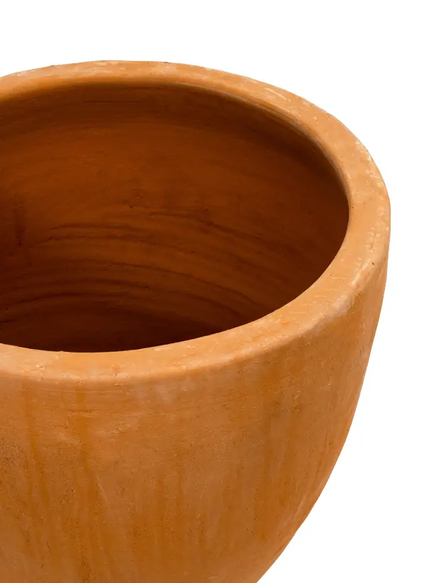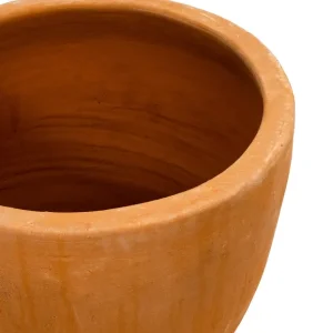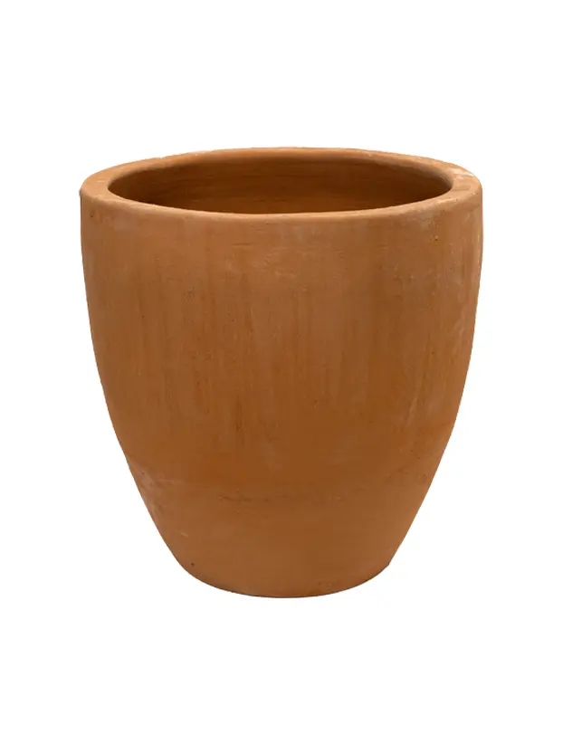Esta maceta de barro de diseño simple y acabado liso es una opción versátil y elegante para la decoración de eventos. Su forma redondeada y tono terracota permiten integrarla fácilmente en diferentes estilos, realzando espacios con un toque natural y sofisticado.