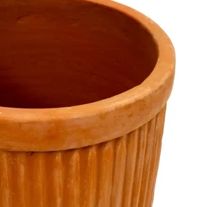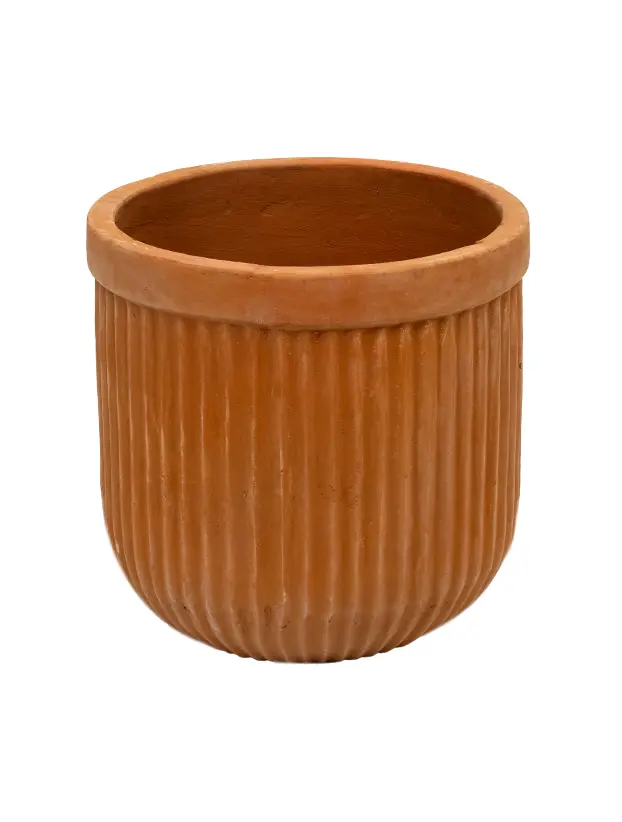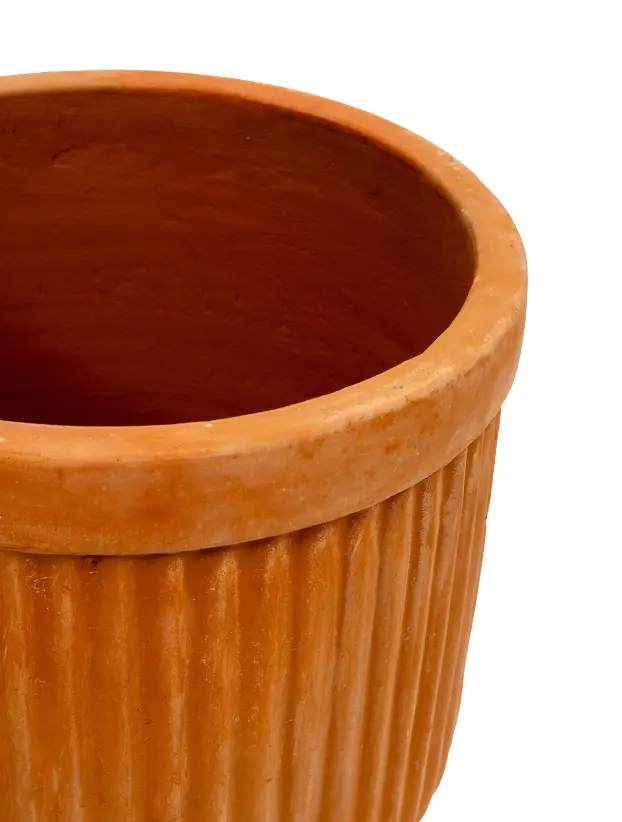 Esta maceta de barro con diseño estriado en tono terracota es una opción elegante y versátil para la decoración de eventos. Su acabado texturizado añade un toque de sofisticación, mientras que su material natural permite integrar plantas y flores de manera armoniosa en cualquier espacio. Perfecta para ambientaciones rústicas, bohemias o contemporáneas, es ideal para realzar la estética de bodas, fiestas o reuniones especiales.