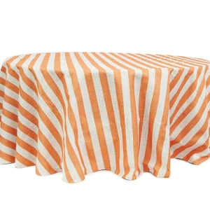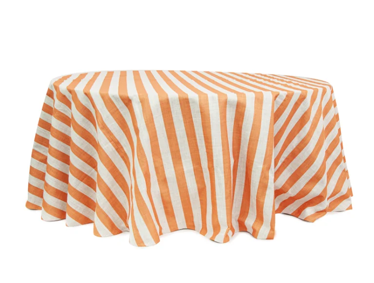 Mantel con franjas horizontales en blanco y naranja terracota, que transmite frescura y un aire vibrante al montaje de mesa. Su diseño alegre y versátil lo convierte en una excelente opción para eventos al aire libre, celebraciones temáticas o fiestas que buscan un estilo moderno y lleno de energía.