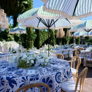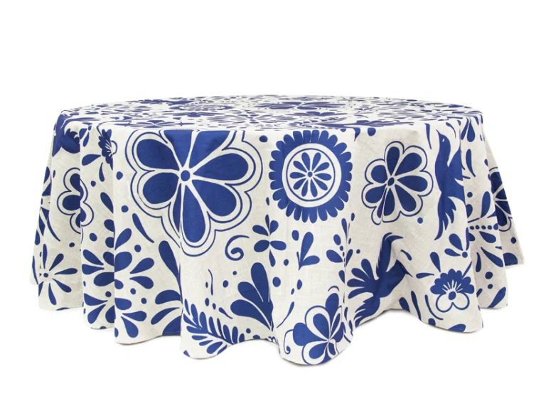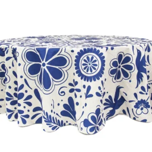 Mantel de talavera azul inspirado en la tradición artesanal mexicana, con patrones ornamentales que combinan tonos azules intensos y detalles decorativos que evocan la cerámica pintada a mano. Su diseño aporta carácter, frescura y un aire vibrante a la mesa, convirtiéndose en el protagonista del montaje. Ideal para eventos con estilo mexicano contemporáneo, celebraciones al aire libre o ambientaciones llenas de color, este mantel transforma cualquier espacio en una escena elegante y llena de identidad.