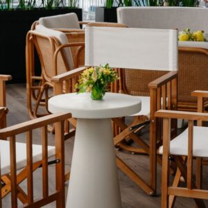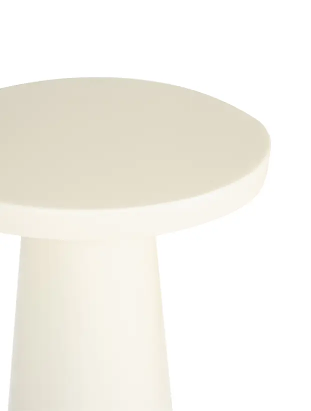 Esta mesa de acompañamiento en color ivory presenta un diseño minimalista y moderno, con una base cónica que aporta estabilidad y un toque elegante. Su tamaño compacto la hace ideal para complementar otros muebles en eventos o espacios interiores, funcionando perfectamente como mesa auxiliar o decorativa. Su simplicidad y color neutro permiten integrarla en diversas decoraciones, añadiendo funcionalidad y estilo sin restar protagonismo al entorno