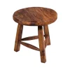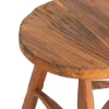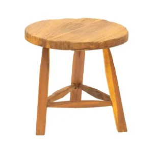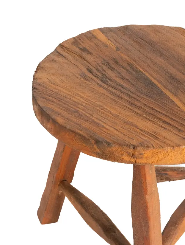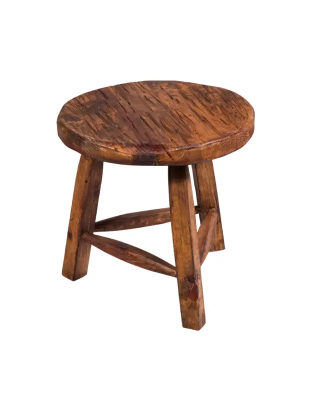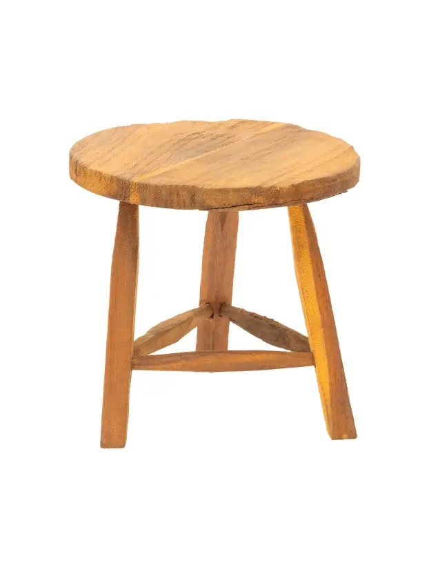 Esta mesa de acompañamiento en madera maciza tiene un diseño rústico y auténtico, con una superficie redonda que muestra las texturas naturales de la madera. Las patas ligeramente inclinadas y el acabado envejecido le dan un toque artesanal, ideal para ambientes bohemios, campestres o vintage. Es perfecta como mesa auxiliar en eventos o espacios que buscan una decoración cálida y con carácter, aportando un elemento acogedor y de estilo tradicional.