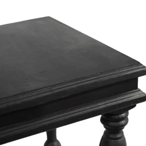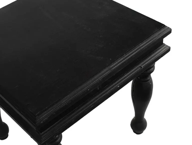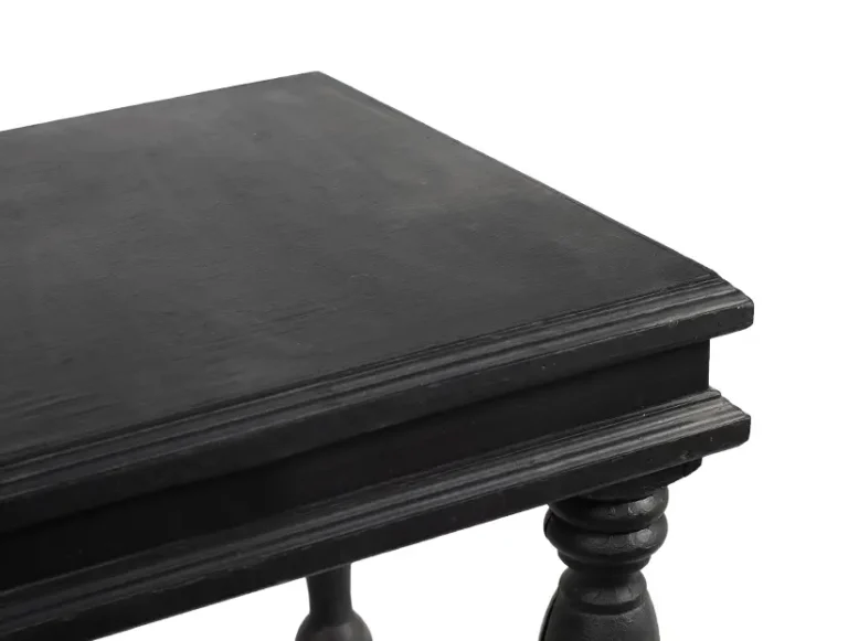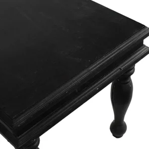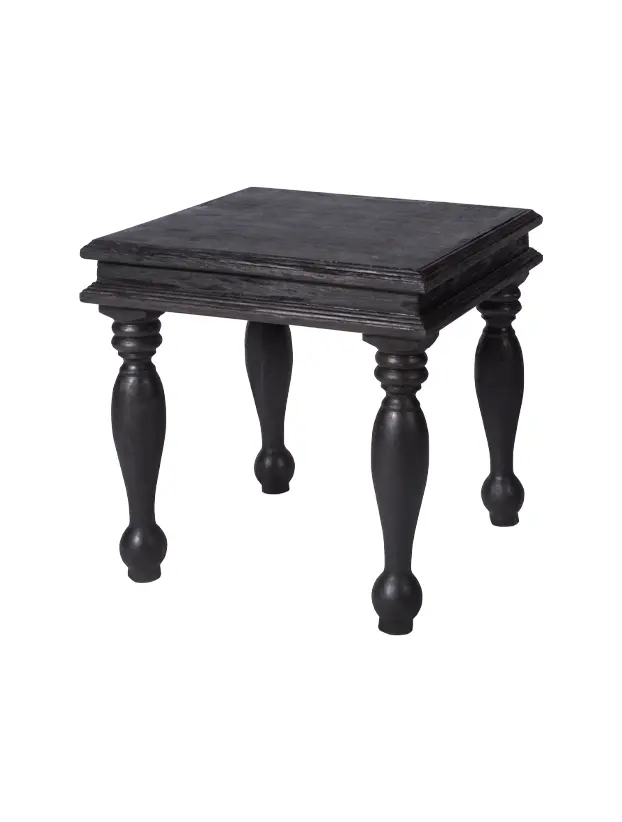 Esta es una mesa auxiliar de estilo clásico en color negro, ideal para añadir un toque de elegancia y sofisticación a cualquier ambiente. La mesa presenta una estructura robusta con detalles tallados en sus patas torneadas, que le dan un aspecto tradicional y refinado. Su tamaño compacto la hace perfecta para complementar áreas de descanso o como mesa de apoyo en eventos, aportando un contraste elegante en decoraciones tanto modernas como vintage.