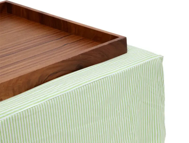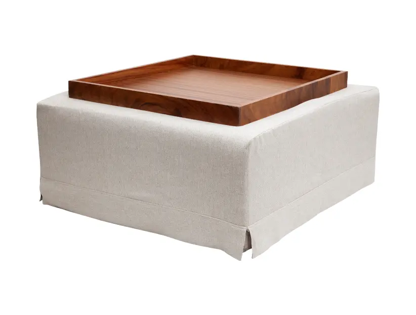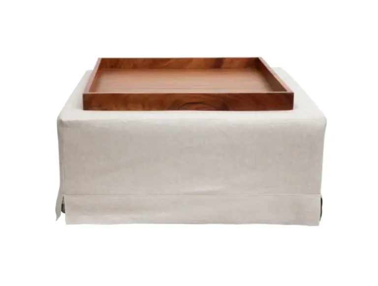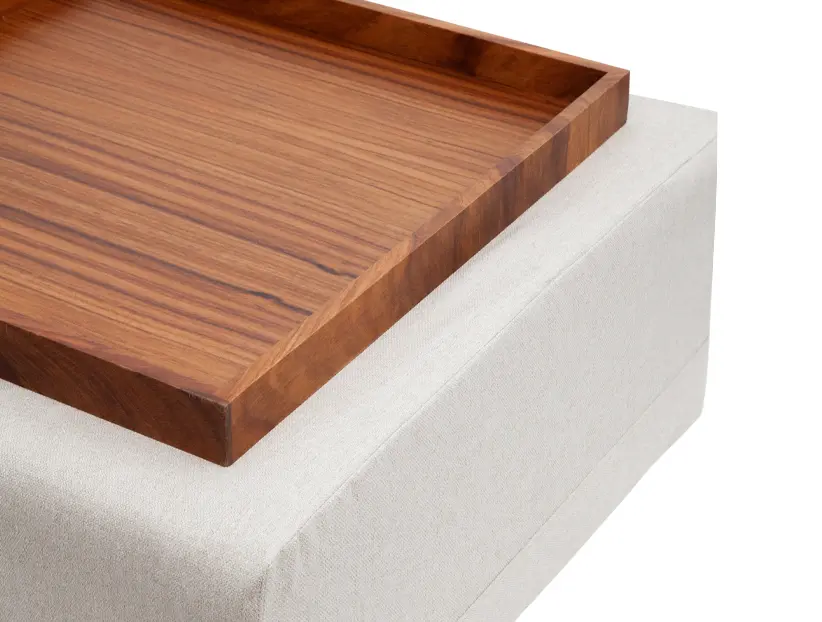 Mesa de centro de tela con charola de madera