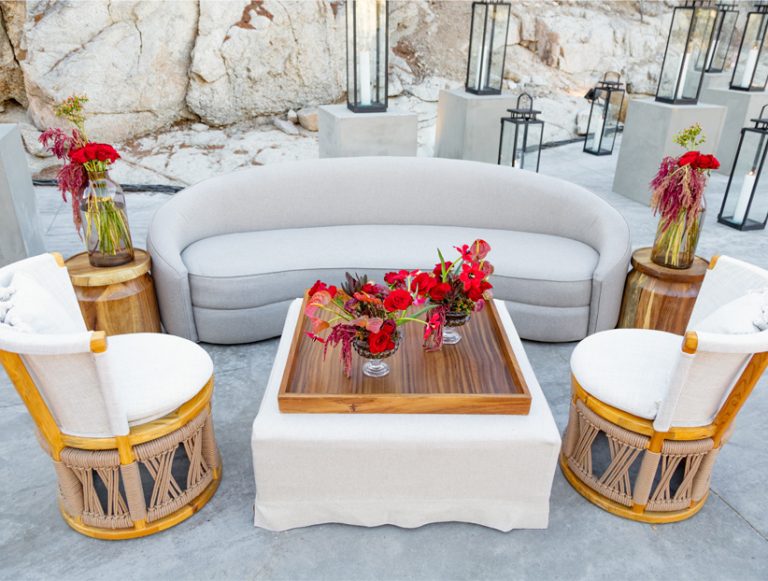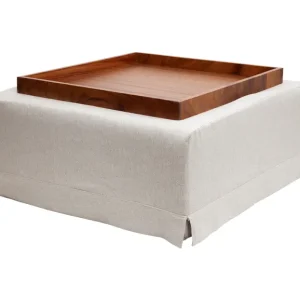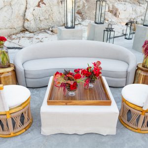 Esta mesa de centro tapizada en tela color neutro con bandeja de madera incluida combina funcionalidad y estilo en un diseño suave y versátil. Ideal para zonas lounge en eventos, su estética limpia y contemporánea se adapta a montajes elegantes, minimalistas o casuales, funcionando tanto como superficie de apoyo como elemento decorativo cálido y acogedor.