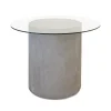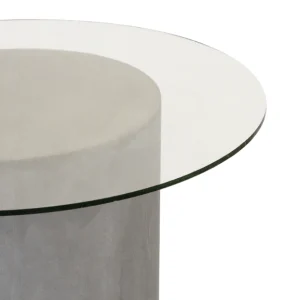 Esta mesa con base cilíndrica de piedra y cubierta de cristal es una pieza decorativa y funcional perfecta para eventos y espacios interiores con un estilo moderno o minimalista. Su diseño combina la solidez y textura natural de la piedra con la ligereza visual del cristal, lo que la hace ideal como mesa auxiliar, de centro o de apoyo en montajes de boda, cocteles o áreas lounge. El cristal permite que la base se aprecie como elemento protagonista, aportando un toque contemporáneo y elegante al ambiente.