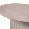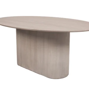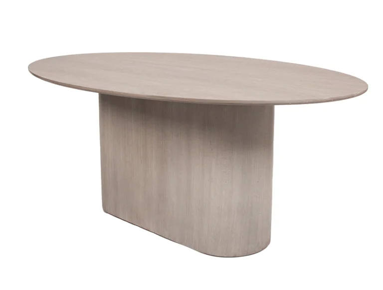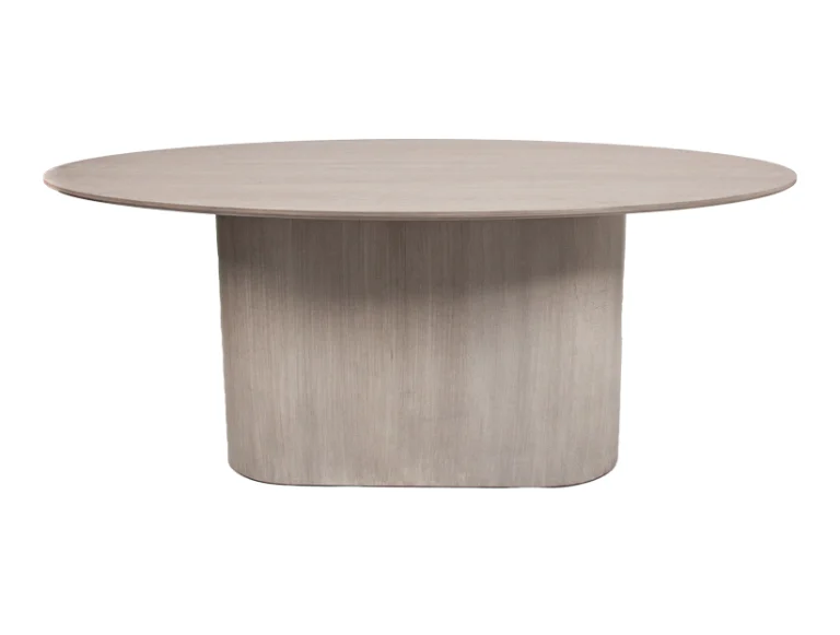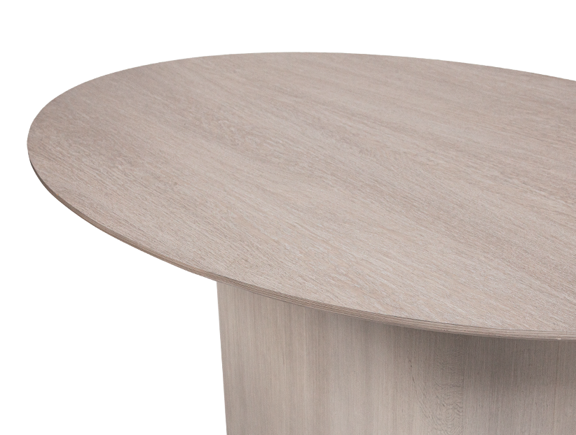 Mesa de cena de diseño moderno y elegante, ideal para renta en eventos sociales y corporativos, con cubierta amplia en tono madera clara que aporta calidez y sobriedad al montaje; su base central sólida y de líneas limpias brinda estabilidad y un estilo contemporáneo, convirtiéndola en una pieza versátil perfecta para bodas, cenas formales, eventos empresariales y montajes de estética minimalista o natural.