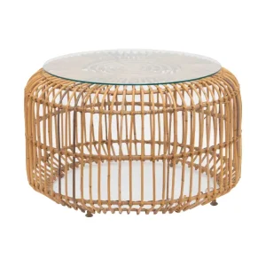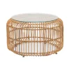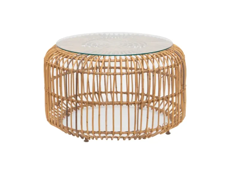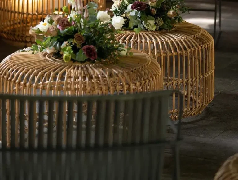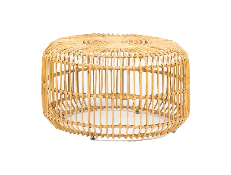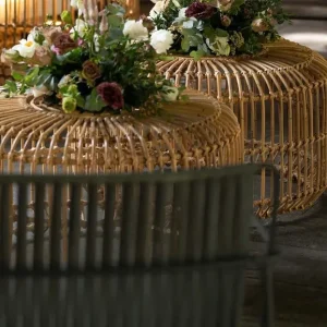 Mesa de acompañamiento con diseño cilíndrico y acabado tejido, rematada con una cubierta de madera que añade un toque cálido y natural. Ideal para renta en eventos con temática bohemia o rústica, esta mesa combina elegancia y textura, perfecta para áreas de lounge o como elemento decorativo en espacios de reunión. Su estructura tejida le da un aspecto ligero y artesanal, adaptándose a ambientes relajados y sofisticados.