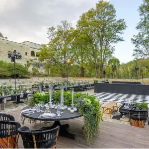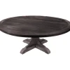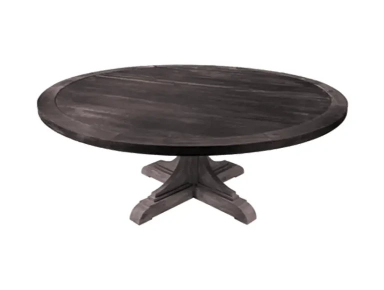 Esta mesa redonda de madera en color negro presenta un diseño clásico y elegante, con una base en estilo «trestle» que le brinda estabilidad y un toque refinado. Su superficie amplia y sólida la hace ideal para reuniones íntimas o cenas formales, aportando un ambiente acogedor y sofisticado. El acabado oscuro le otorga versatilidad para combinar con decoraciones modernas o tradicionales, siendo una excelente opción para eventos que buscan una pieza central con carácter y distinción.