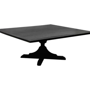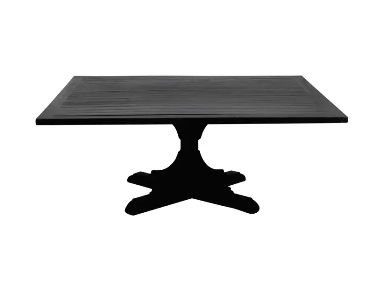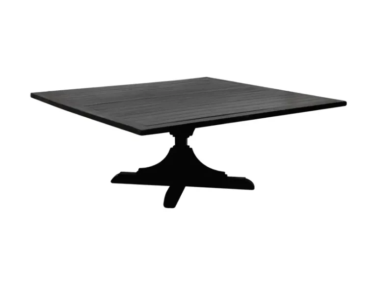 Esta mesa cuadrada en color negro presenta un diseño clásico y elegante con una base central estilo «trestle» que le brinda estabilidad y un toque distintivo. Su superficie amplia y su acabado oscuro aportan una estética sofisticada y versátil, ideal para eventos formales o ambientes con una decoración tradicional. Esta mesa es perfecta como pieza central en reuniones o cenas íntimas, ofreciendo un espacio funcional con una apariencia atemporal y refinada.