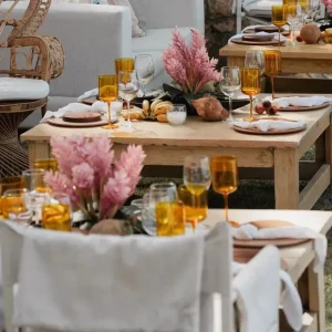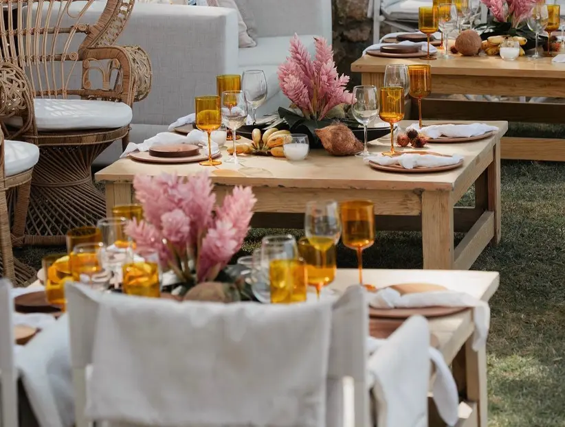 Mesa de centro rectangular en madera natural con diseño sencillo y robusto, perfecta para renta en eventos que buscan un estilo rústico y acogedor. Su acabado en madera clara y líneas rectas aportan calidez y un toque artesanal, ideal para complementar áreas de lounge o espacios de reunión en decoraciones campestres o minimalistas. Esta mesa es una elección versátil y elegante para ambientes relajados y naturales.