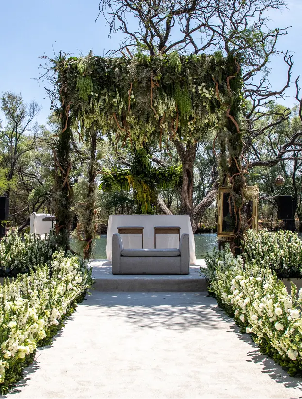 Esta pérgola metálica de estructura abierta, con dimensiones de 3x3x3 metros, es una pieza versátil y elegante para eventos al aire libre o en interiores amplios. Su diseño minimalista y geométrico permite personalizarla fácilmente con elementos decorativos como luces, telas o arreglos florales, adaptándola a cualquier temática o estilo de evento. La estructura en color negro le da un toque sofisticado y moderno, ideal para bodas, recepciones o eventos corporativos que buscan un marco decorativo funcional y estético. Es perfecta para crear áreas de ceremonia, lounges o espacios especiales dentro de un evento.