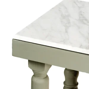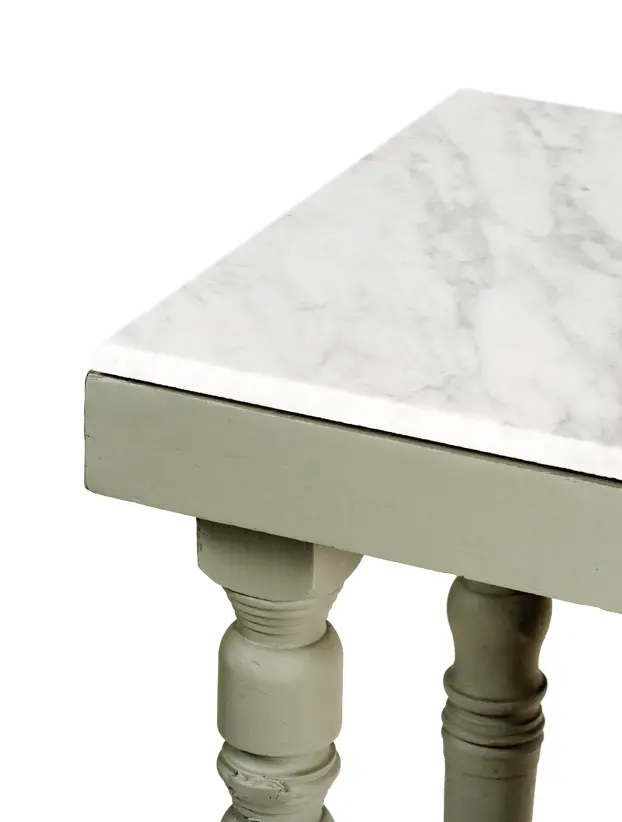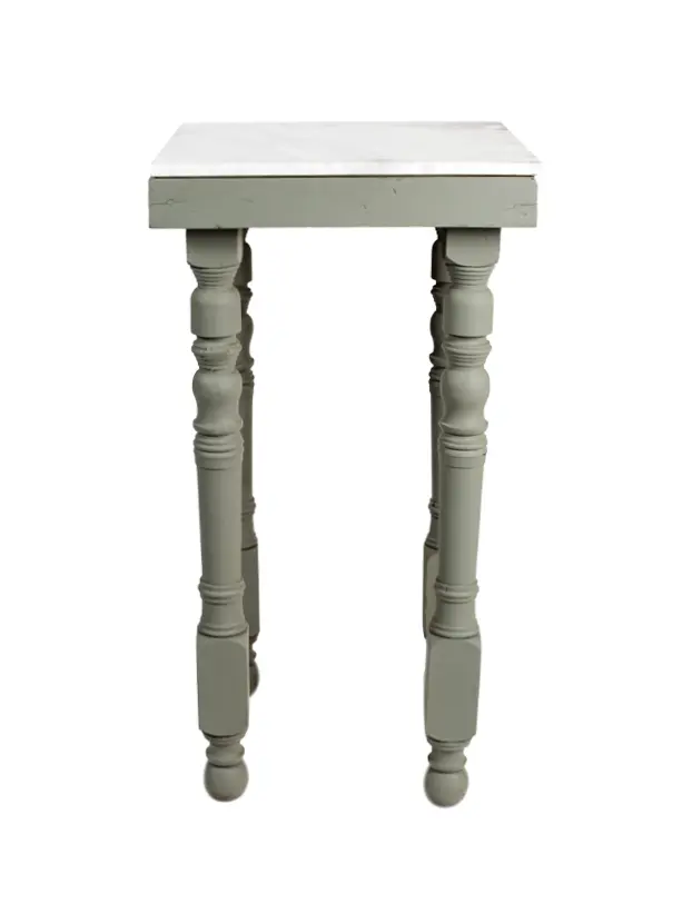 Periquera de madera con cubierta de mármol y patas torneadas en color gris.