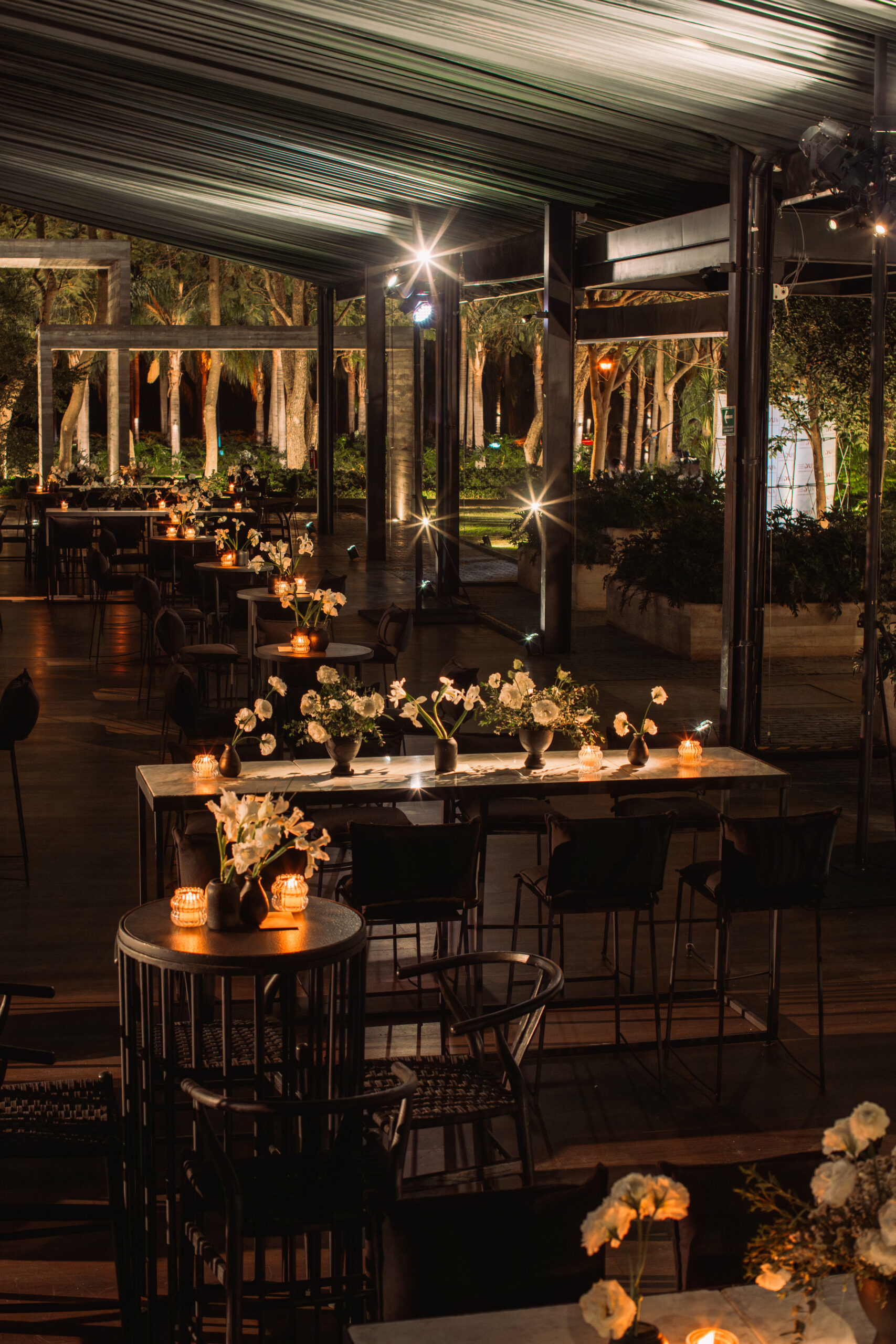 Mesa periquera tubular en color negro, con diseño minimalista y estructura de barras metálicas verticales que le aportan un estilo moderno e industrial. Ideal para renta en eventos que buscan una decoración contemporánea y elegante, esta mesa es perfecta para áreas de socialización y estaciones de bar. Su apariencia ligera y estilizada la convierte en una opción versátil para ambientes sofisticados y urbanos.
