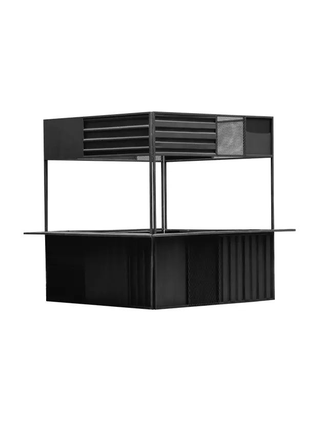 Este puesto metálico «Punta Mita» en color negro es una estructura moderna y robusta, ideal para eventos que buscan un estilo industrial y contemporáneo. Su diseño modular incluye paneles texturizados y detalles de malla metálica que añaden un toque de carácter y sofisticación. La estructura elevada permite una funcionalidad óptima para exhibir productos, servir bebidas o alimentos, o como punto de información en eventos corporativos, ferias o exposiciones. Su apariencia sobria y profesional lo convierte en una pieza versátil que puede adaptarse a diversas temáticas, ofreciendo una estética limpia y elegante para cualquier tipo de evento.