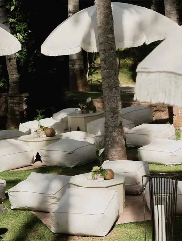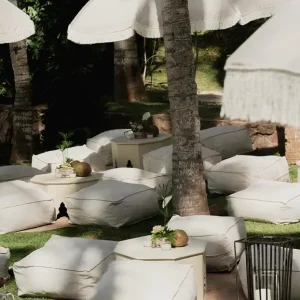 Este cojín decorativo gigante en tono ivory ofrece un estilo suave y versátil para complementar cualquier espacio de evento. Confeccionado en lino, proporciona un toque elegante y acogedor, ideal para crear áreas de descanso cómodas y sofisticadas.