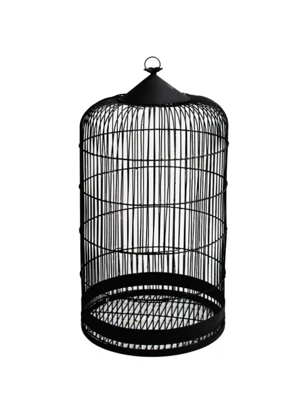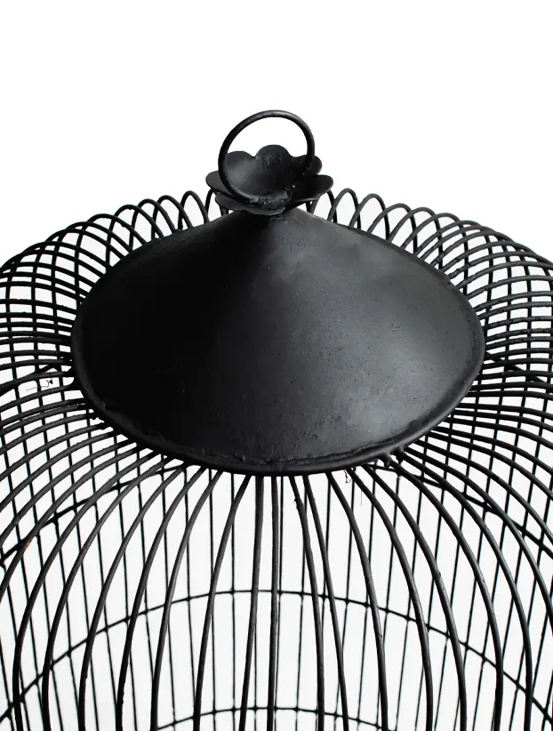 Esta jaula decorativa de metal en color negro presenta un diseño clásico y elegante, con varillas delgadas que le dan un aspecto ligero y sofisticado. La forma cilíndrica y el detalle de un aro en la parte superior permiten colgarla, haciéndola versátil para su uso en eventos o espacios interiores. Es ideal para ambientaciones vintage, rústicas o bohemias, y puede usarse tanto como elemento decorativo por sí sola como para contener luces, velas o arreglos florales, aportando un toque de encanto nostálgico y romántico.