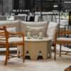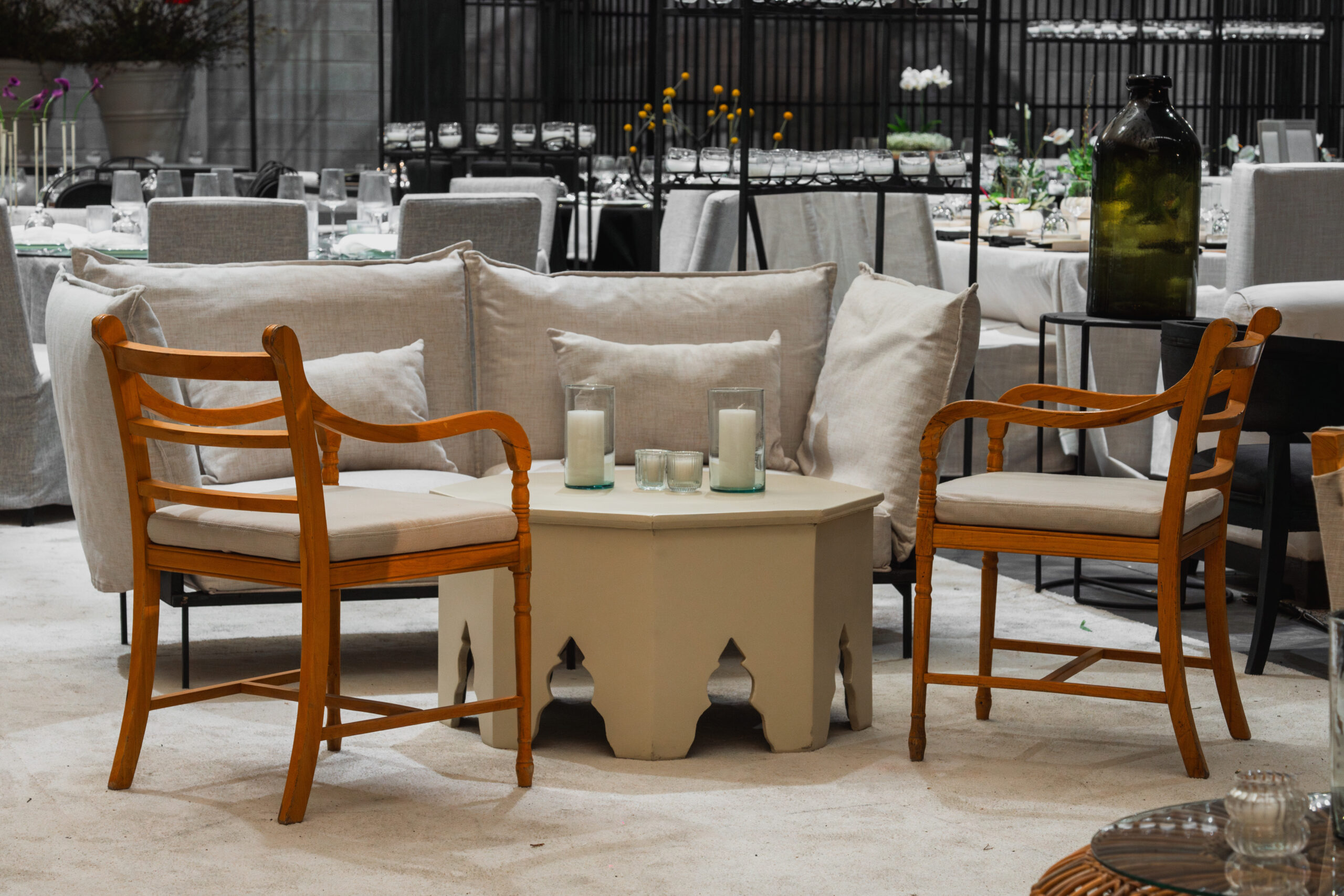 Silla con estructura de madera en tono claro, con detalles torneados en las patas delanteras y curvas en los brazos lo que le dan un aspecto refinado y artesanal. El respaldo tiene un diselo abierto con barras horizontales que aporta ligereza visual. El asiento cuenta con cojin en color ivory que agrega comodidad. Esta silla es perfecto para eventos formales con toque elegante y tradicional.