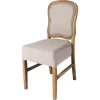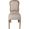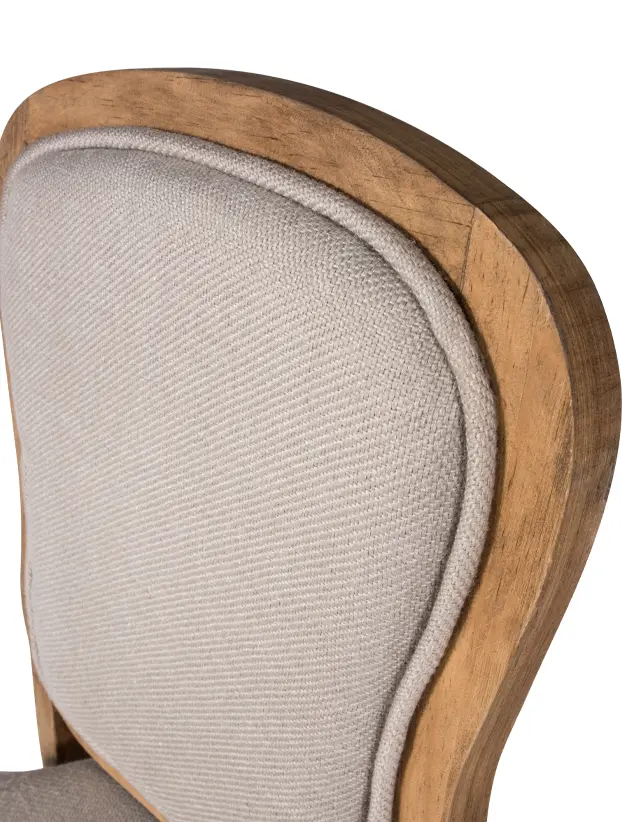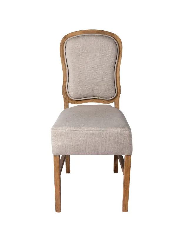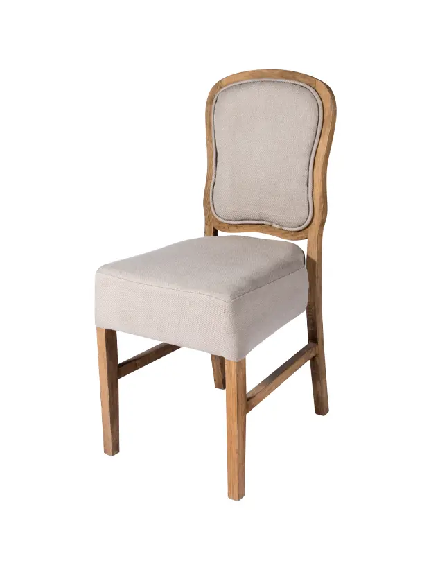 Silla con una estructura de madera robusta y acabados naturales, aporta un toque cálido y sofisticado. El respaldo y asiento están tapizados en una tela de tono beige claro que complementa su diseño atemporal, brindando comodidad sin perder su estética refinada. Es perfecta para eventos como bodas, cenas formales y celebraciones en ambientes acogedores y de buen gusto, donde se busca crear una atmósfera de elegancia y distinción. Esta silla clásica y elegante es ideal para renta en eventos de estilo vintage, rústico o tradicional.
