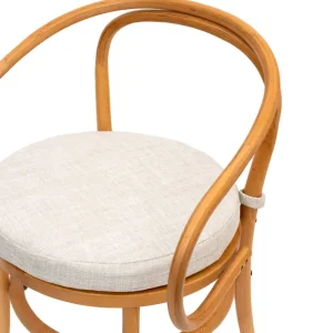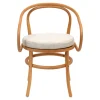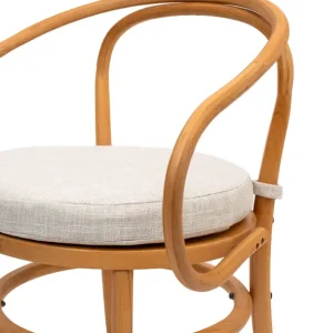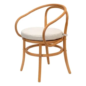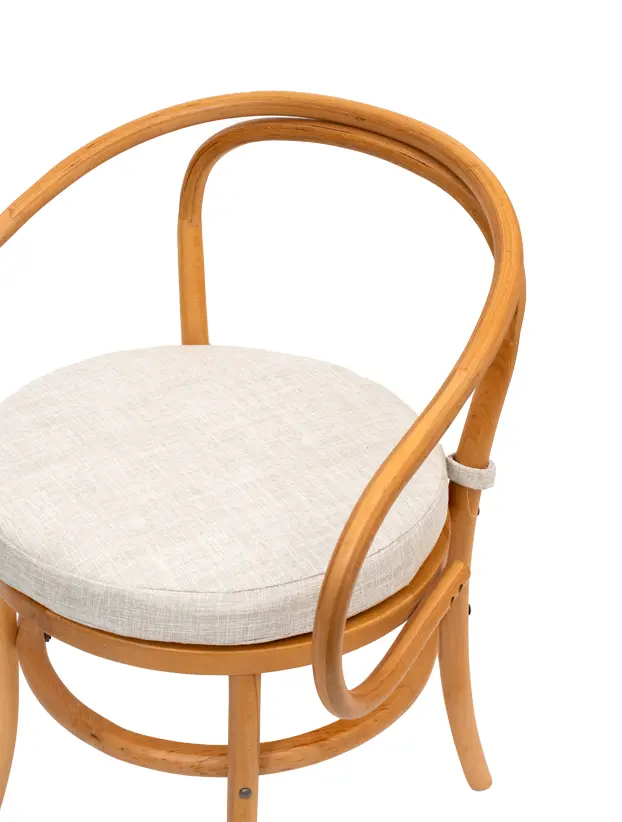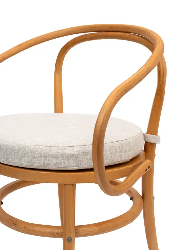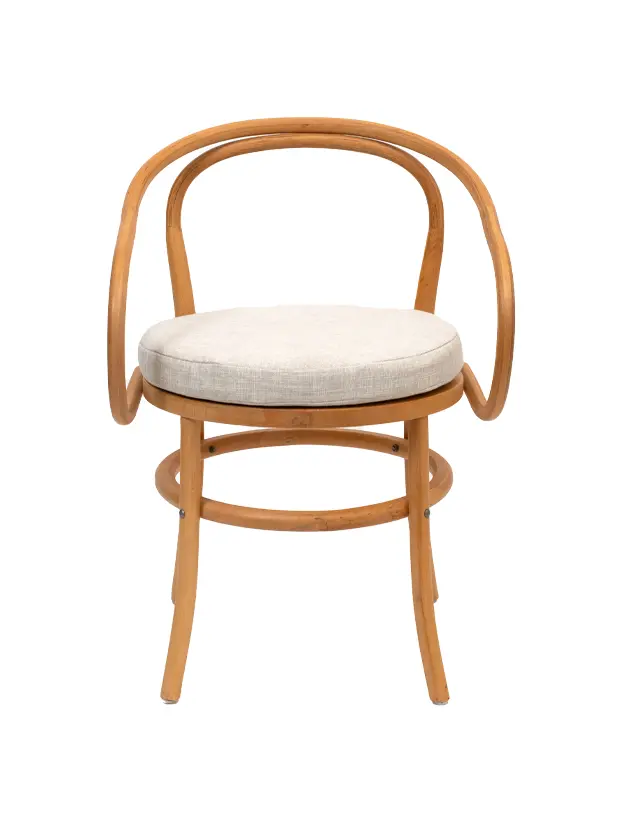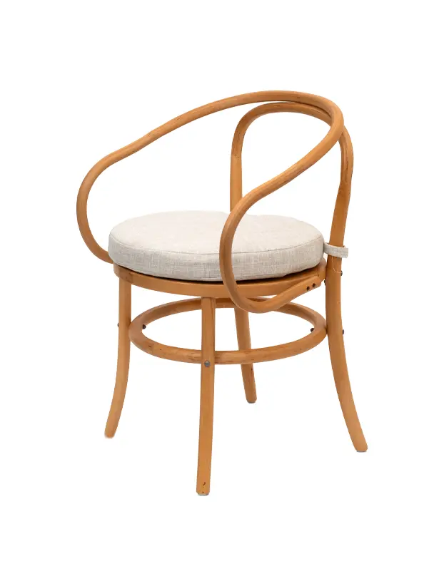 Esta silla de madera curvada con asiento acolchonado en tono claro ofrece un diseño elegante y moderno. Sus líneas curvas le aportan un aire sofisticado y orgánico, ideal para espacios contemporáneos o con un toque escandinavo. Perfecta para comedores, salas de estar o rincones de lectura acogedores.