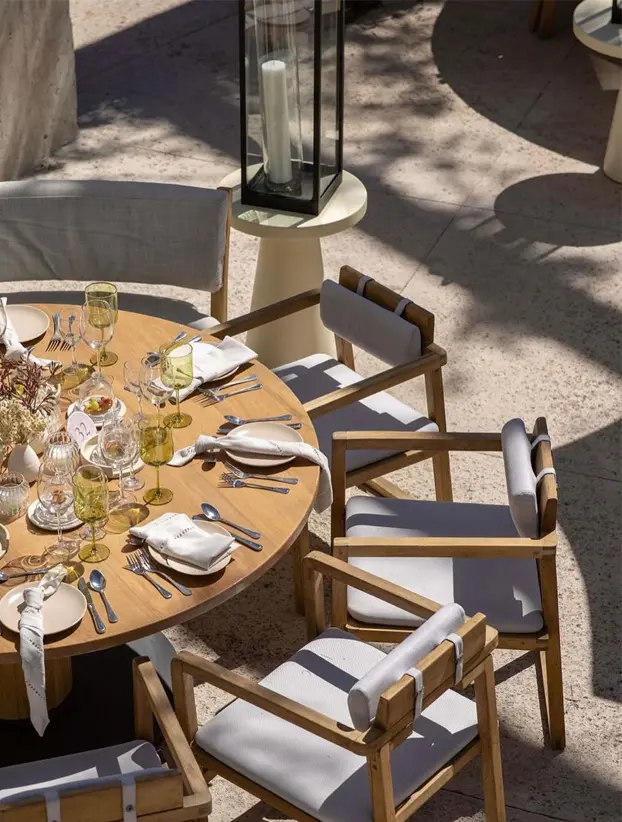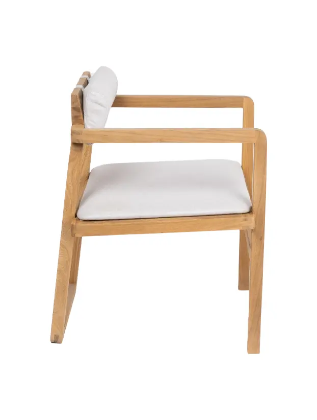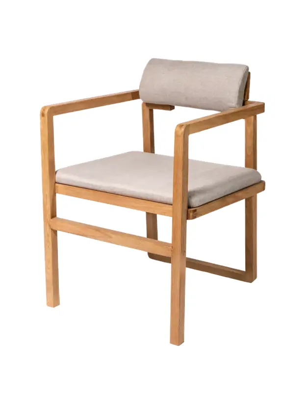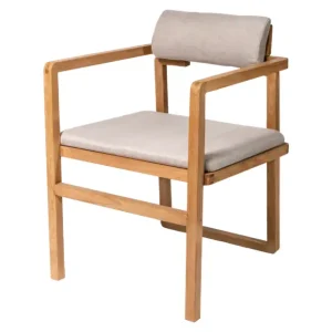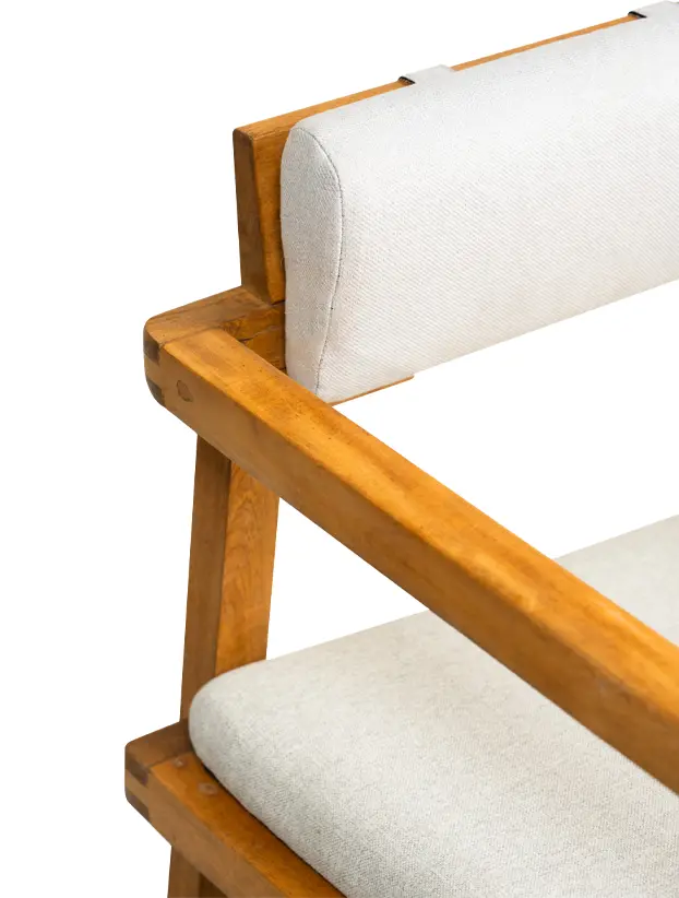 Esta silla de diseño moderno y funcional, con estructura de madera clara y líneas rectas, es ideal para eventos que buscan una estética minimalista y natural. El respaldo cilíndrico y el asiento acolchado en tono beige brindan comodidad sin sacrificar estilo, creando un equilibrio entre lo contemporáneo y lo acogedor. Su diseño versátil permite que se adapte a diferentes tipos de decoración, desde ambientes nórdicos hasta bohemios. Perfecta para reuniones, cenas al aire libre o interiores modernos, esta silla aporta calidez y simplicidad a cualquier espacio.