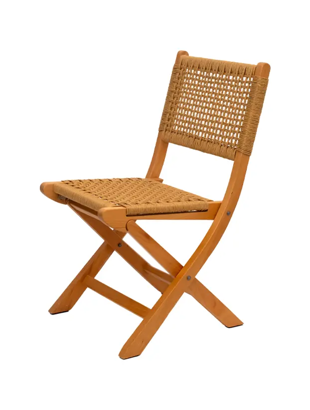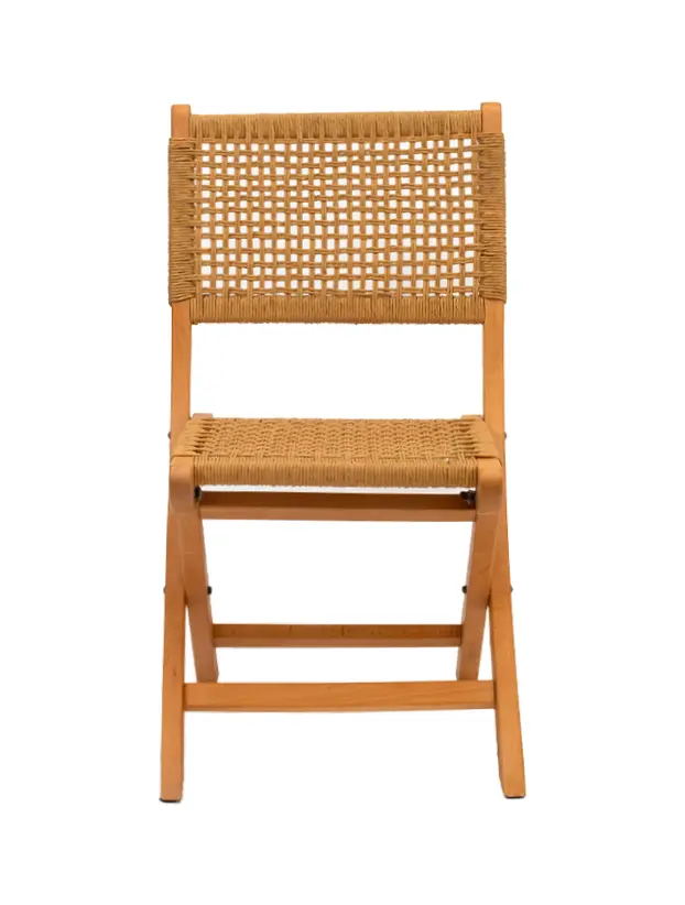 Esta silla plegable de madera con asiento y respaldo de ratán es perfecta para eventos o espacios con un estilo natural y minimalista. Su diseño ligero y funcional permite un fácil almacenamiento y transporte, sin sacrificar la estética elegante y acogedora. Ideal para reuniones, comedores o ambientes al aire libre.