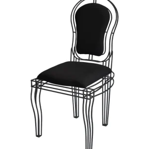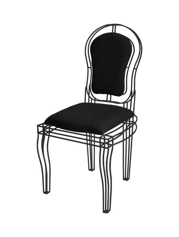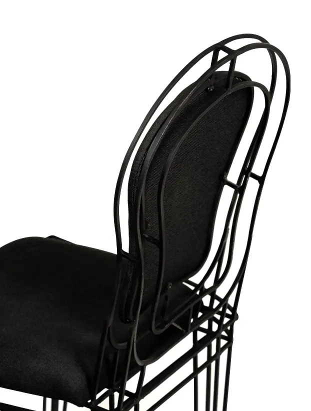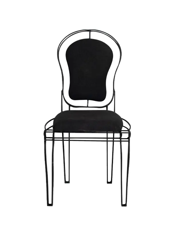 Esta silla de diseño moderno y llamativo cuenta con una estructura metálica en color negro y un respaldo con forma curvada y asimétrica, lo que le aporta un toque de sofisticación y originalidad. El asiento y respaldo están acolchados en un tono negro, lo que realza su estética elegante y minimalista. Ideal para eventos con una temática contemporánea o industrial, esta silla es perfecta para bodas, cenas formales y eventos de alto estilo que buscan un mobiliario distintivo y con personalidad. Su diseño único añade un toque de modernidad y distinción a cualquier ambiente.